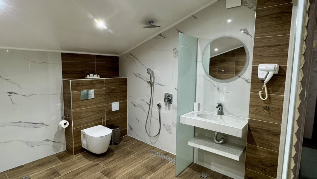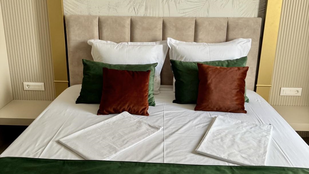 - Всички помещения са в свежи тонове, носещи добро настроение, а обзавеждането е в стиловия и цветови облик на хотела. За Вашия комфорт, всички те са оборудвани със самостоятелна WC и просторна баня, телевизор, кабелна телевизия, телефон, безжичен интернет. На Ваше разположение във всяка баня има хавлии и санитарен комплект