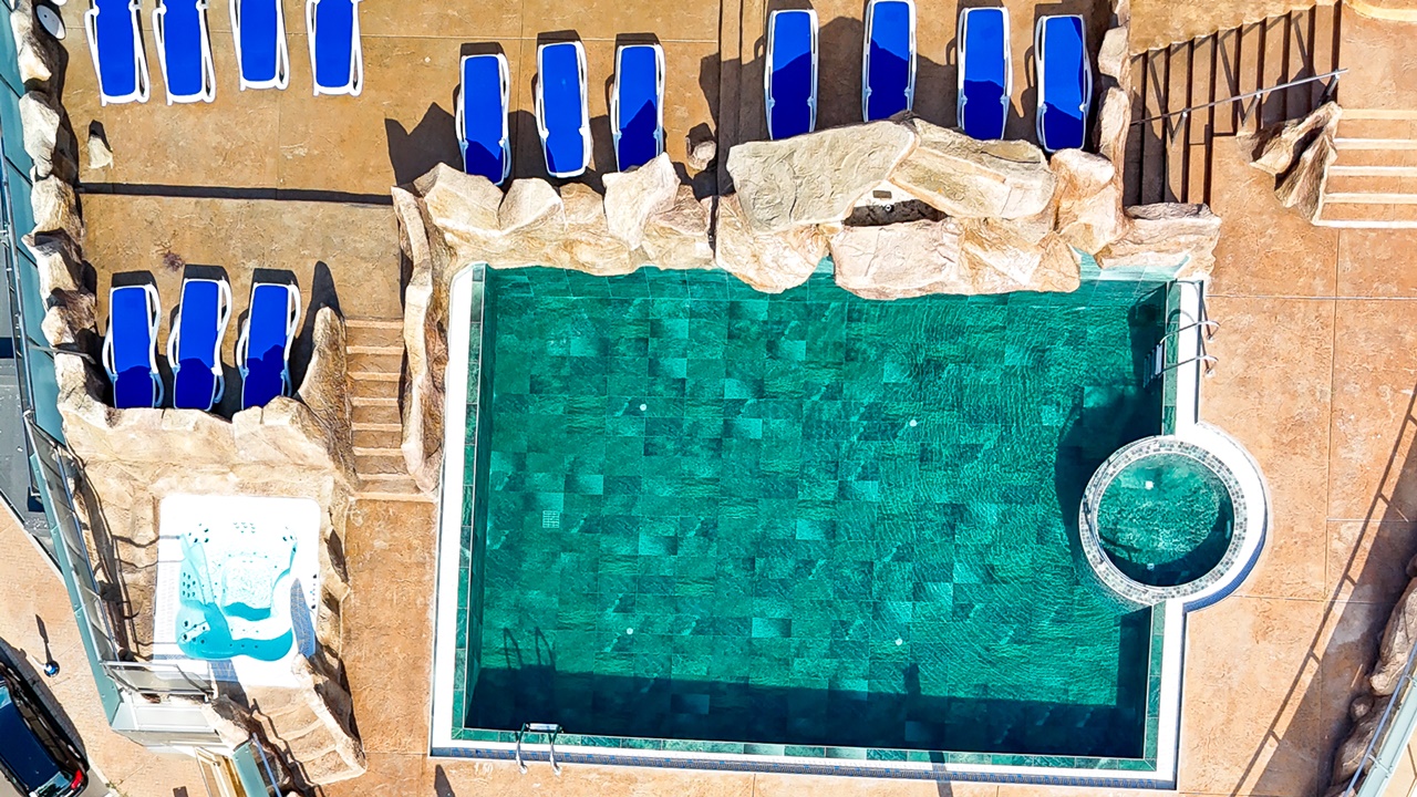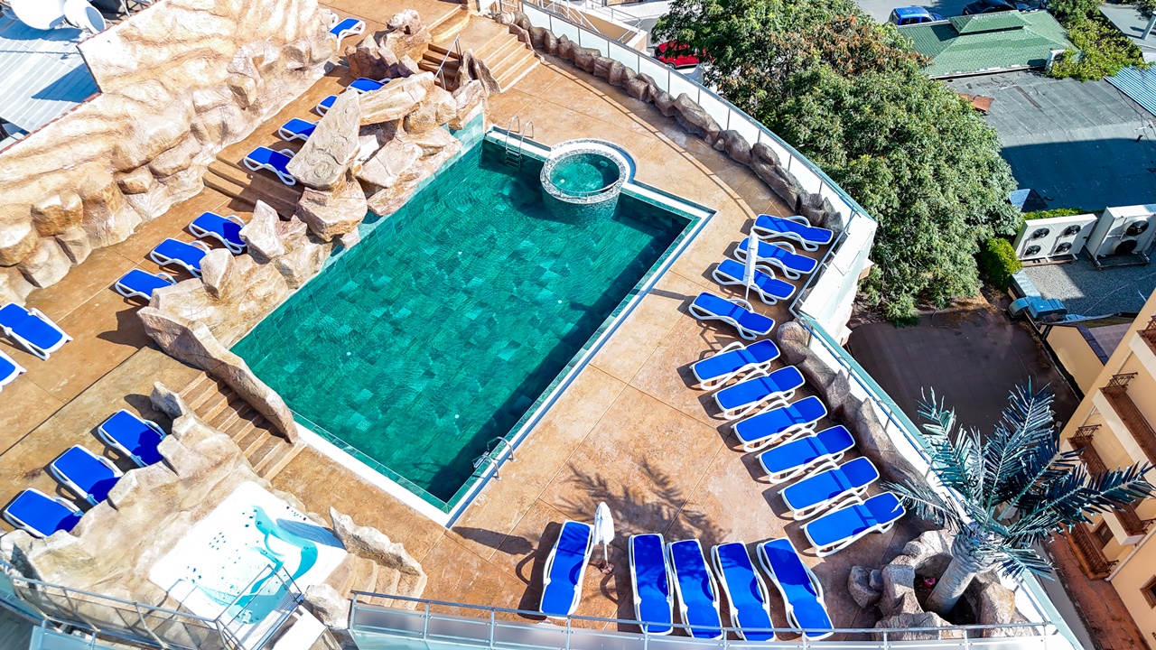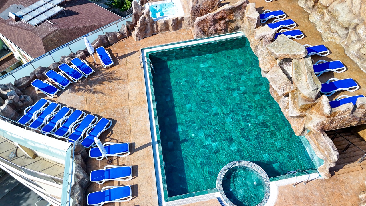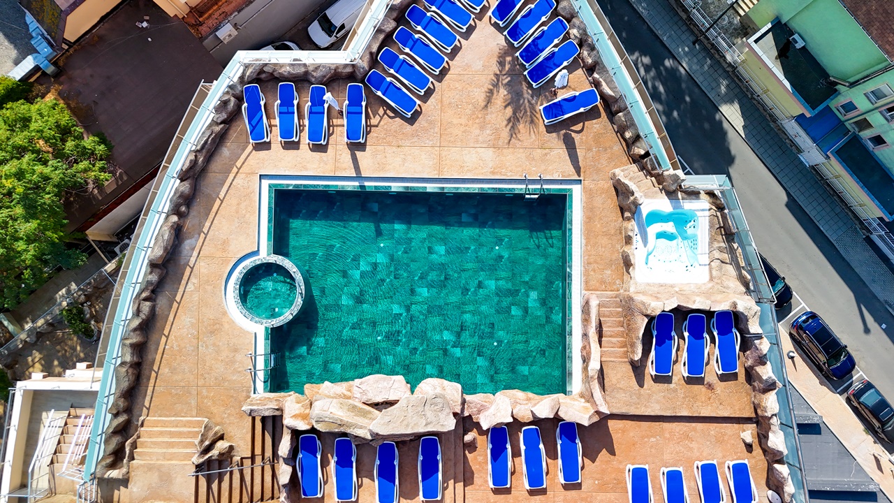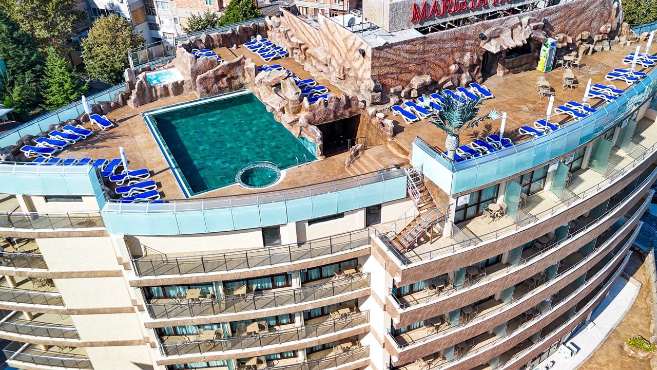 - Панорамен басейн с джакузи на покрива на хотела (отворен през летния сезон)