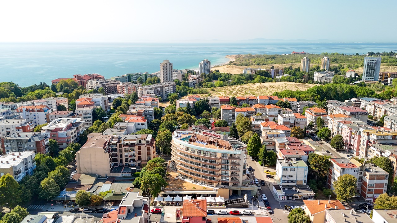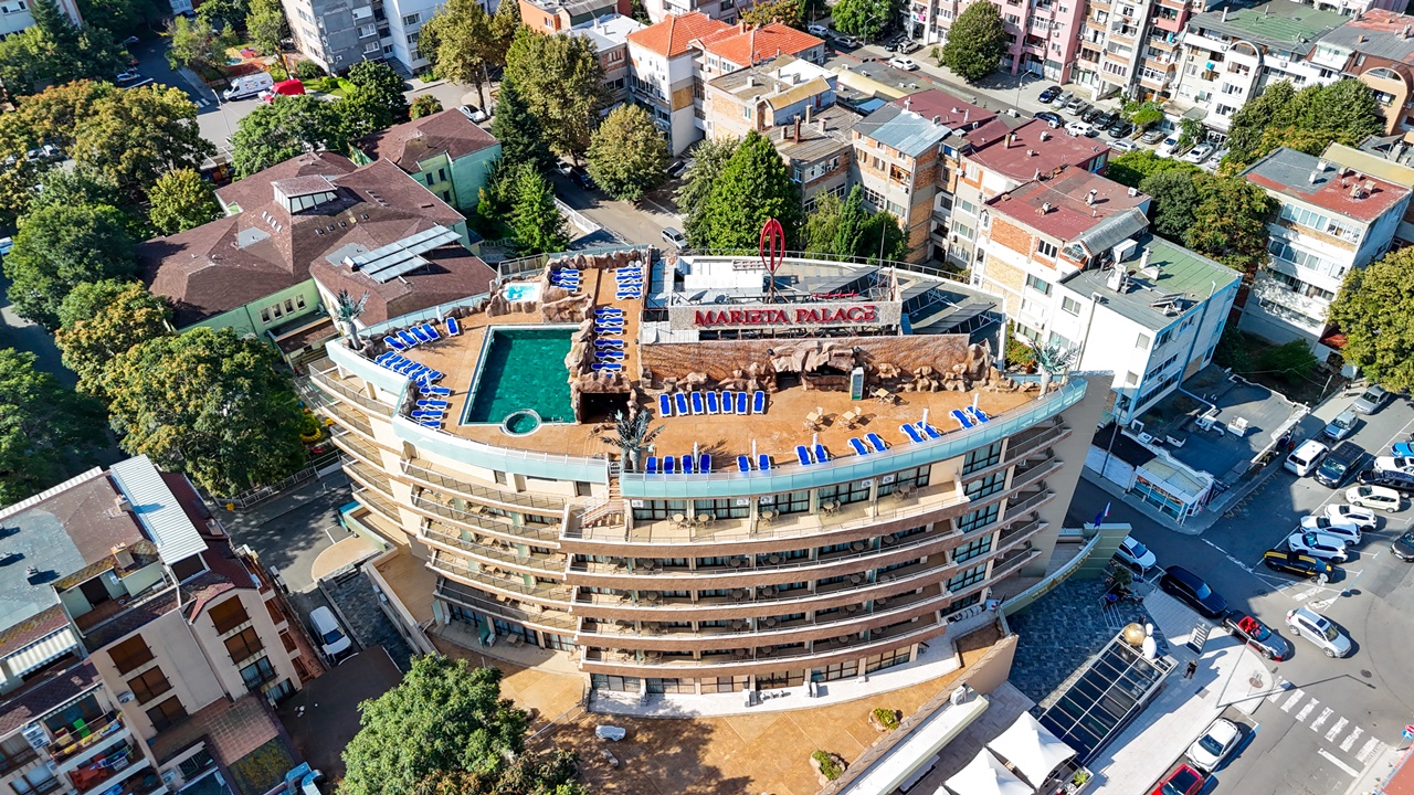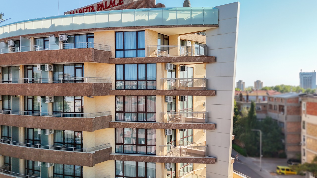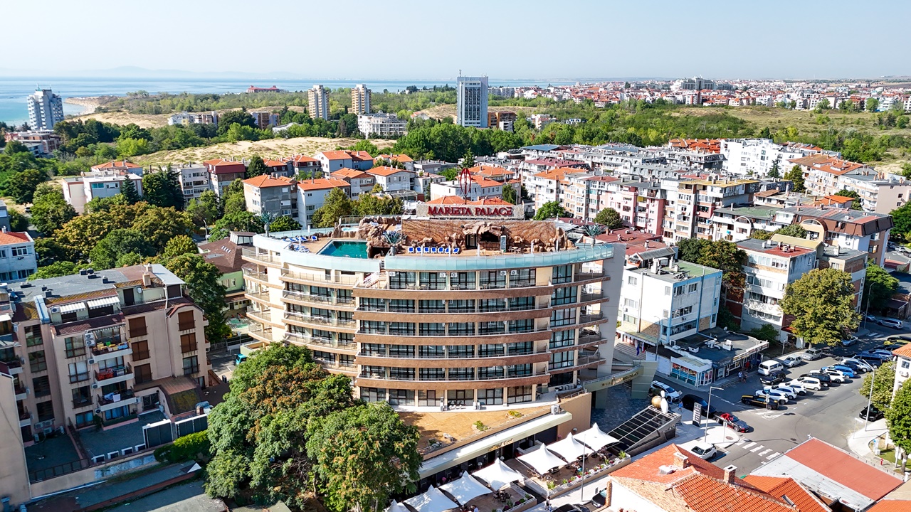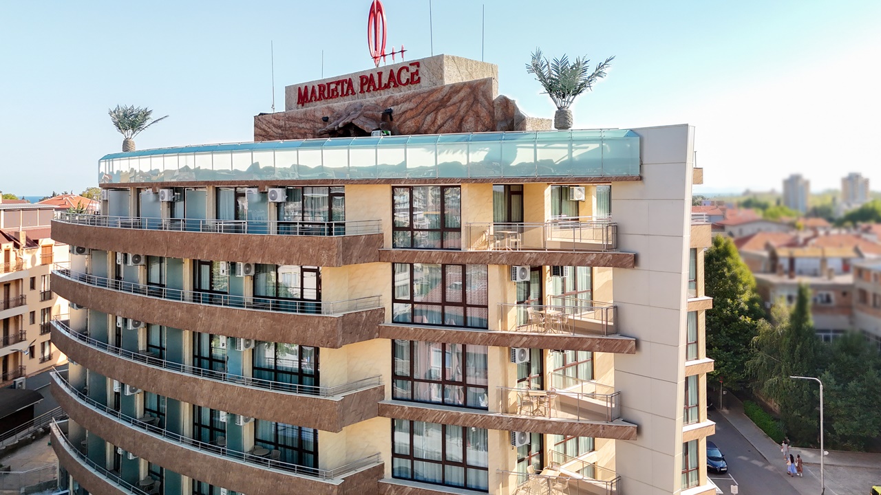 Хотел Мариета Палас, Несебър e разположен в близост до най-оживените търговски улици на Несебър и само на 600м от живописния Черноморски плаж. Отличава се с модерна архитектура и стил, които се вписват по своеобразен начин в атмосферата на Несебър. Елегантност, дружелюбно отношение и комфорт ще ви направят впечатление още при влизане в хотела.
