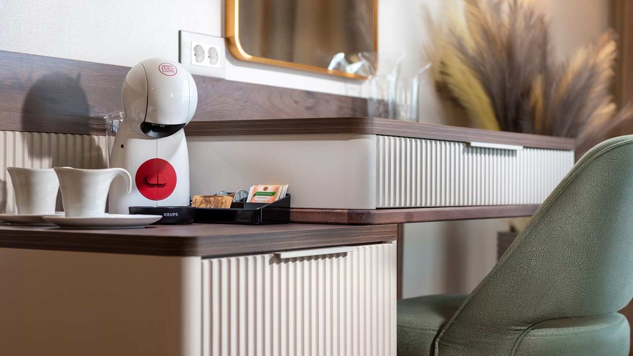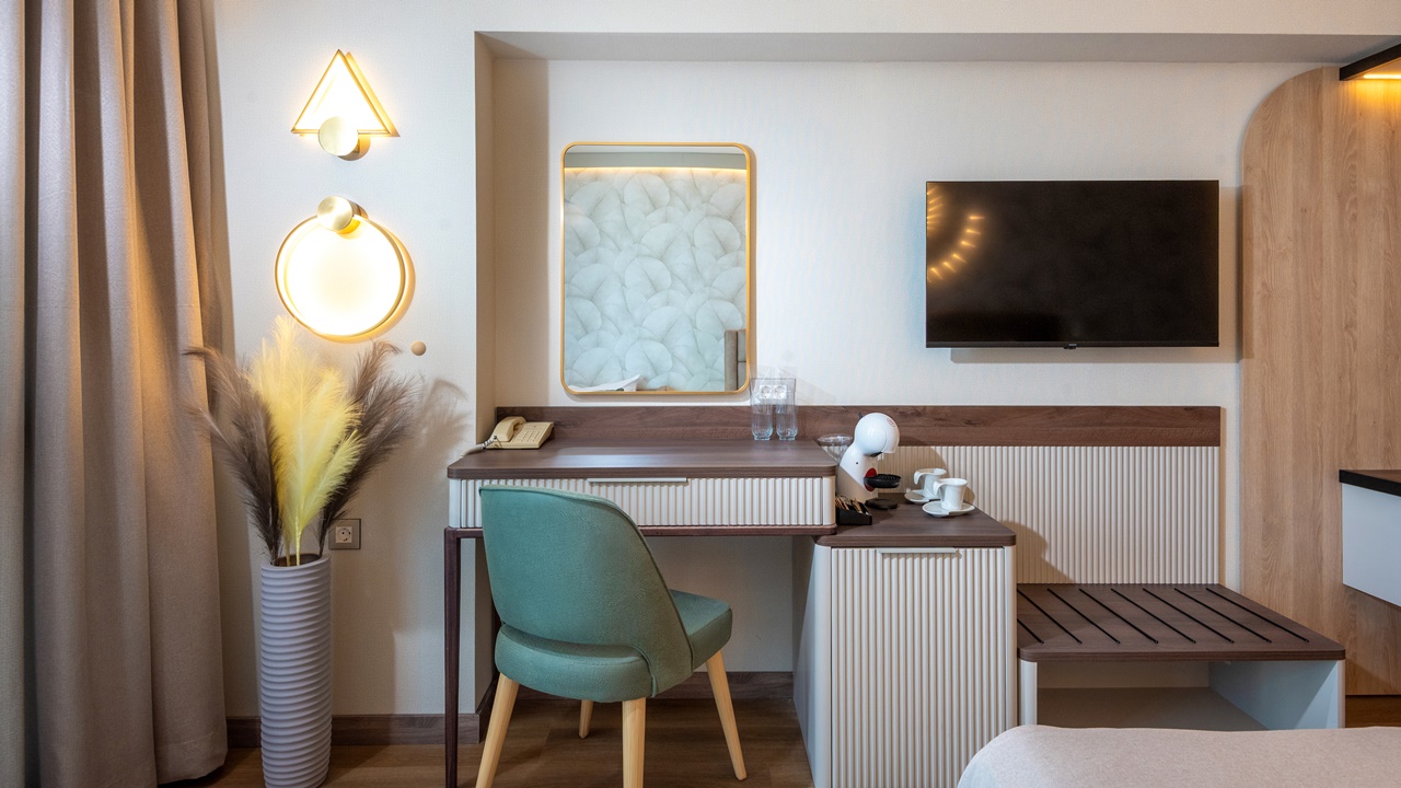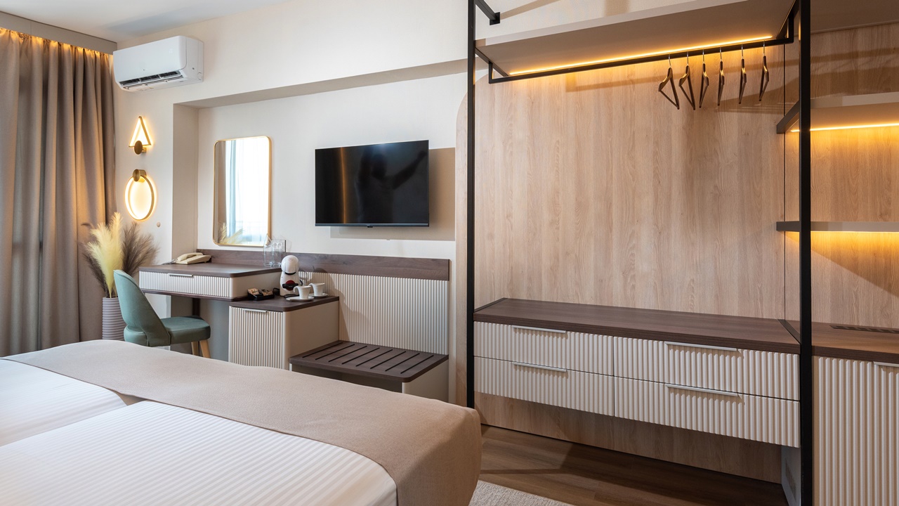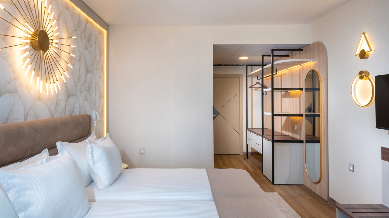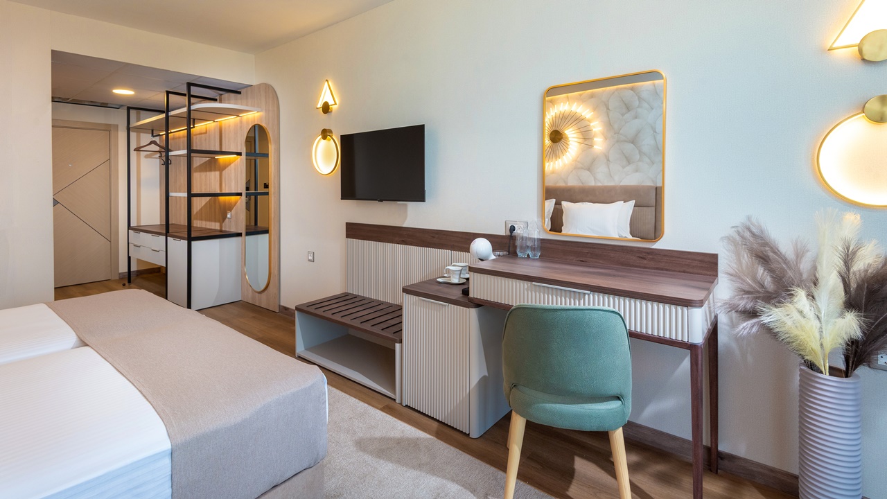 - Двойна стандартна стая - Приблизителна площ между 22 - 26 м2. Всички двойни стаи разполагат с едно двойно легло или две единични легла (позиционирани едно до друго) и едно допълнително легло - разтегателен фотьойл (90см х 190см). Обзаведени са с климатик, плоскоекранен телевизор, минибар, сейф, кафе машина, WiFi, баня с душ кабина, сешоар и тоалетни принадлежности, тераса