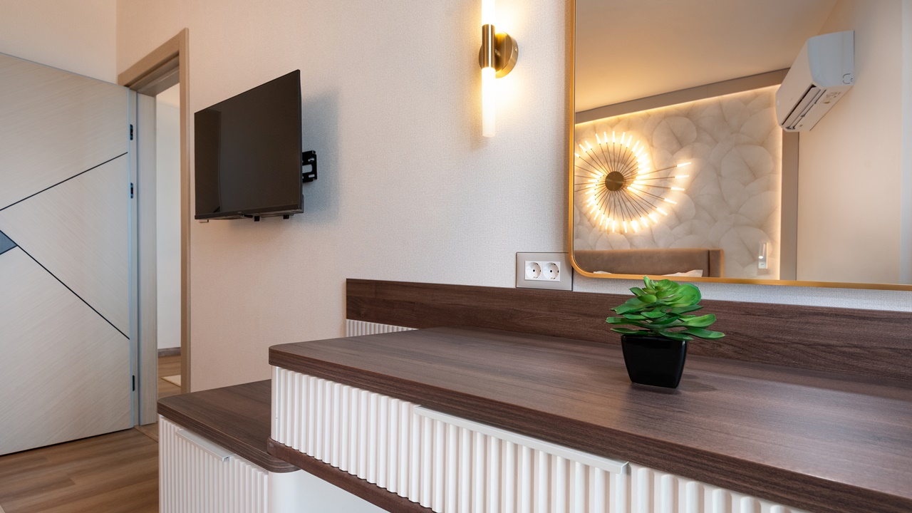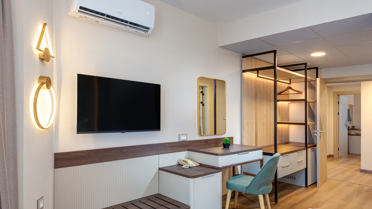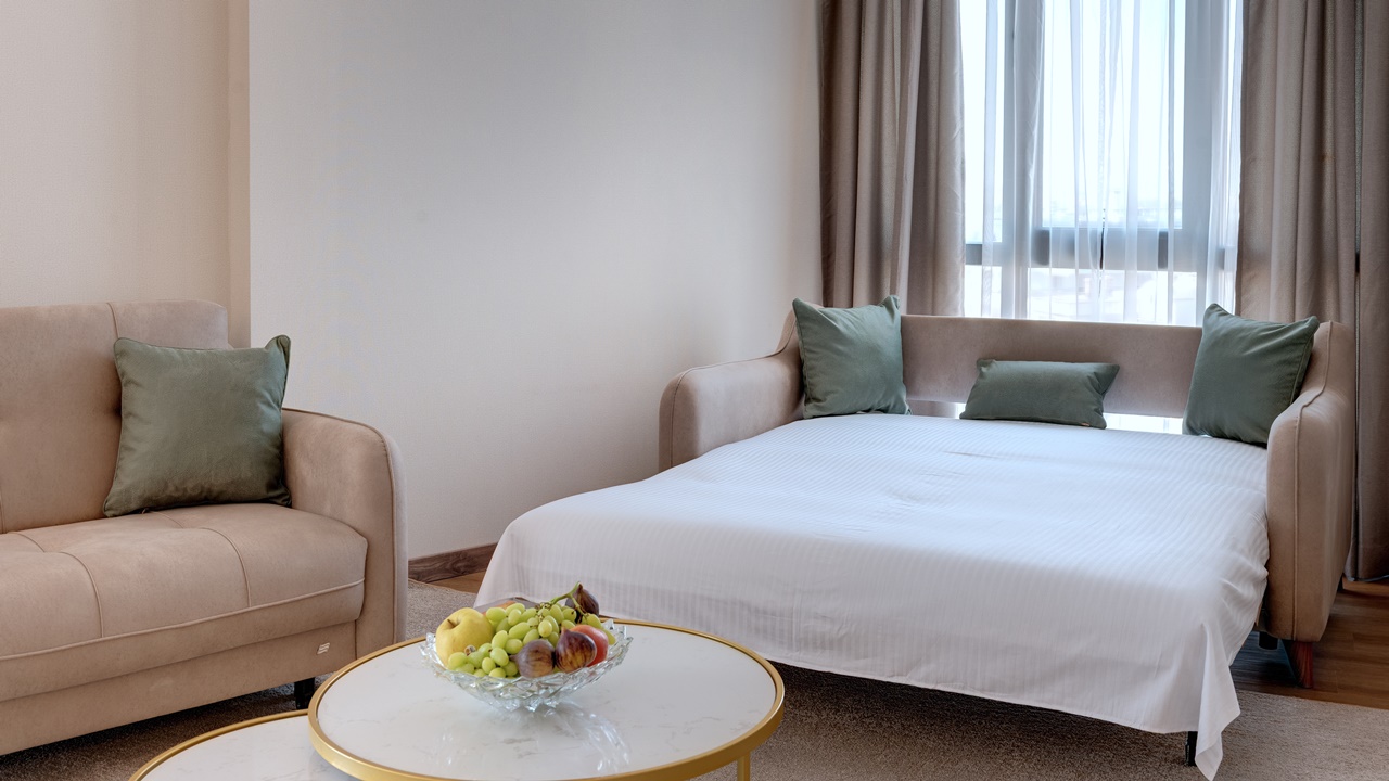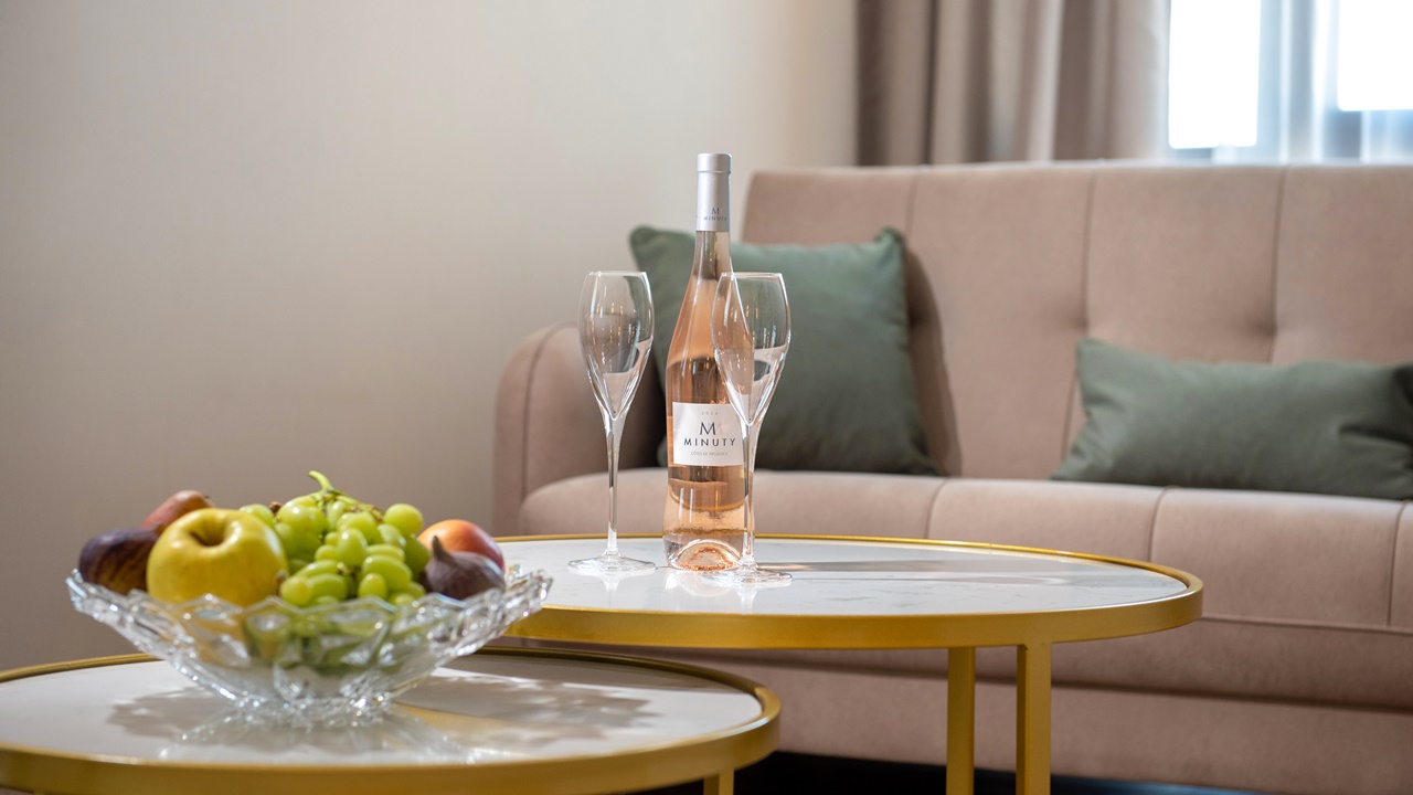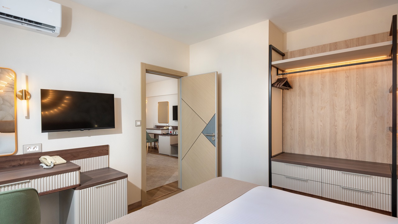 - Апартамент с 1 спалня - Приблизителна площ 36 м2. Апартаментите се състоят от две стаи - спалня и дневна, разделени с врата. В спалнята има едно двойно легло или две единични легла (позиционирани едно до друго), а в дневната - разтегателен диван (160см х 190см) или 2 разтегателни фотьойла. Обзаведени са с климатик, плоскоекранен телевизор, минибар, сейф, кафе машина, WiFi, баня с душ кабина, сешоар и тоалетни принадлежности, тераса.