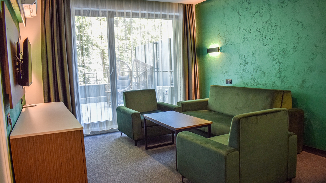 - апартамент с 1 спалня - 40 кв. м. Две отделни стаи, спалня в едната, разтегателен диван в хола
