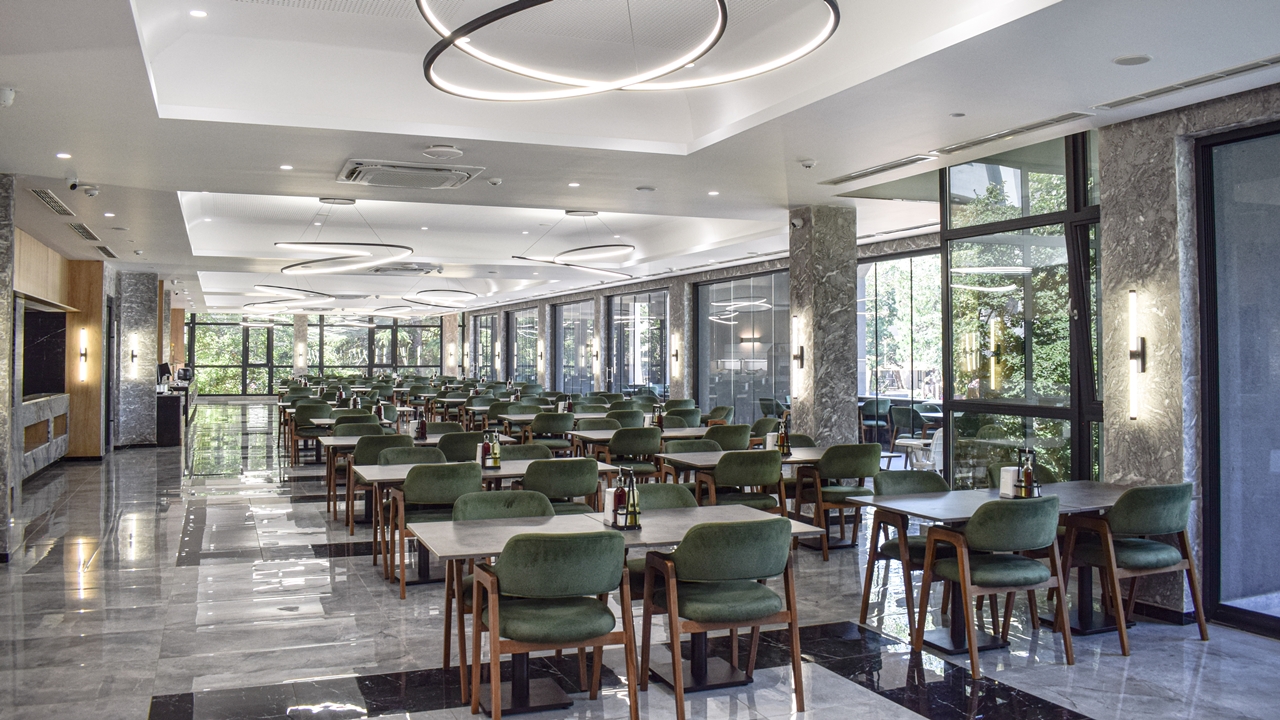 - Основното изхранването е на блок маса в Основен ресторант, разполагащ с 200 места на закрито и на открити тераси, междинните хранения са на бар басейна