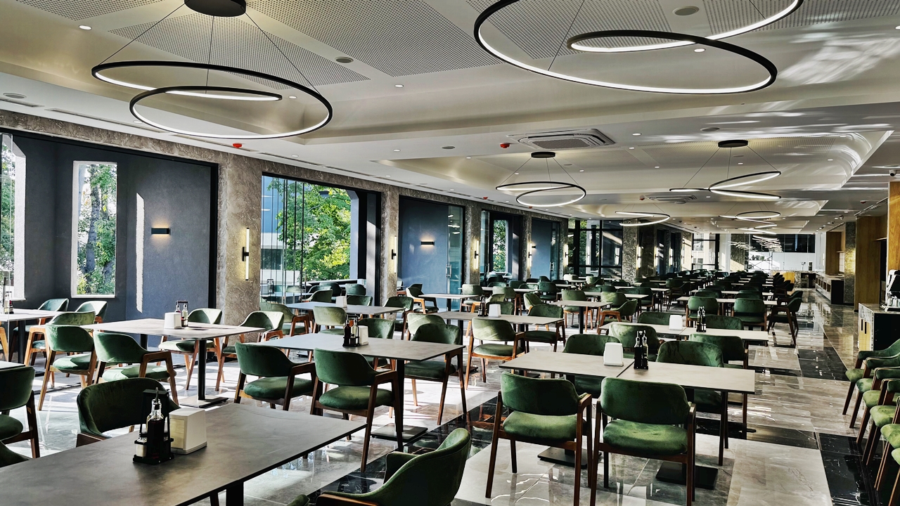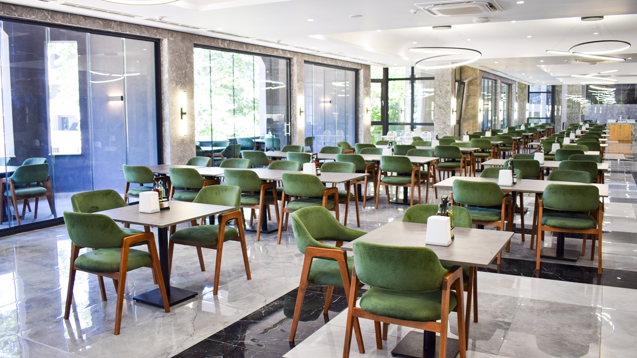 Основният ресторант разполага с 200 места както на закрито, така и на открити тераси, с прекрасна гледка към градината. Налични са и още опции като лоби бар, a-la-carte ресторант и традиционна механа на свободна консумация. Хотелът е базиран на 5 етажа с 2 асансьора, налична е и конферентна зала до 150 човека.