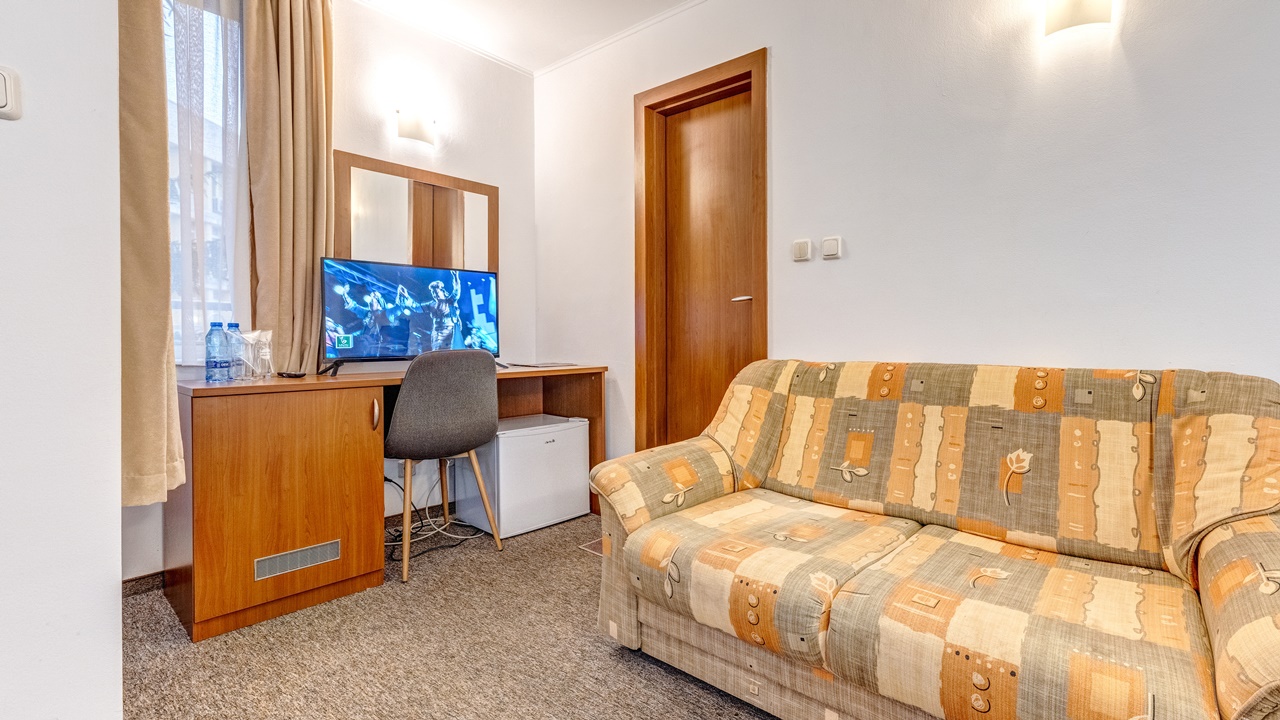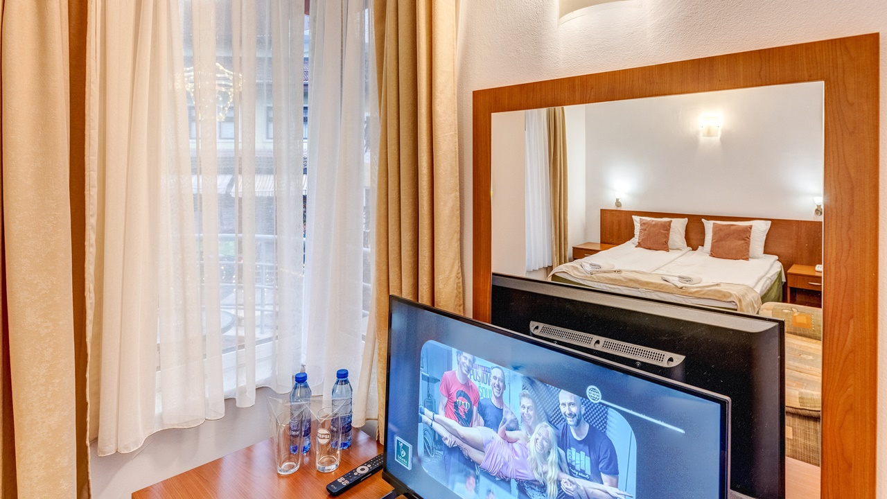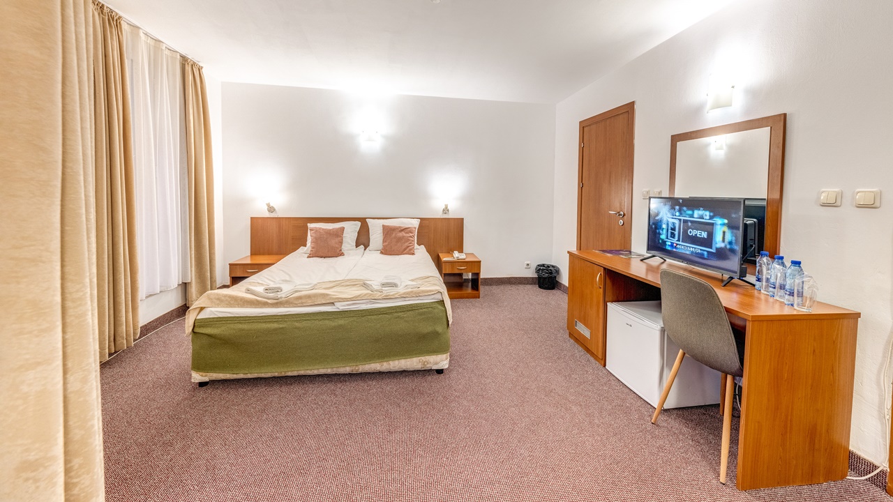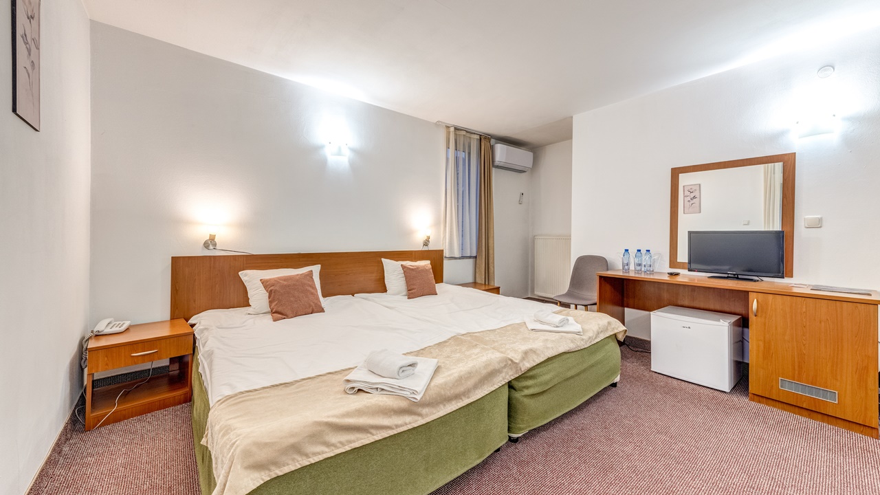 - Стаите разполагат със самостоятелна баня, климатик, телевизор със сателитни програми, телефон, интернет и мини бар