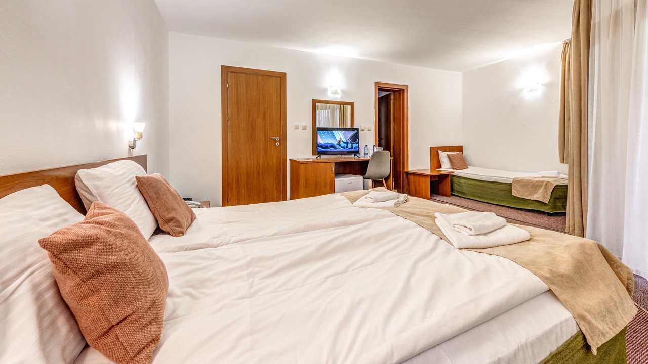 - двойната стая - 2 възрастни и 1 дете или 3 възрастни