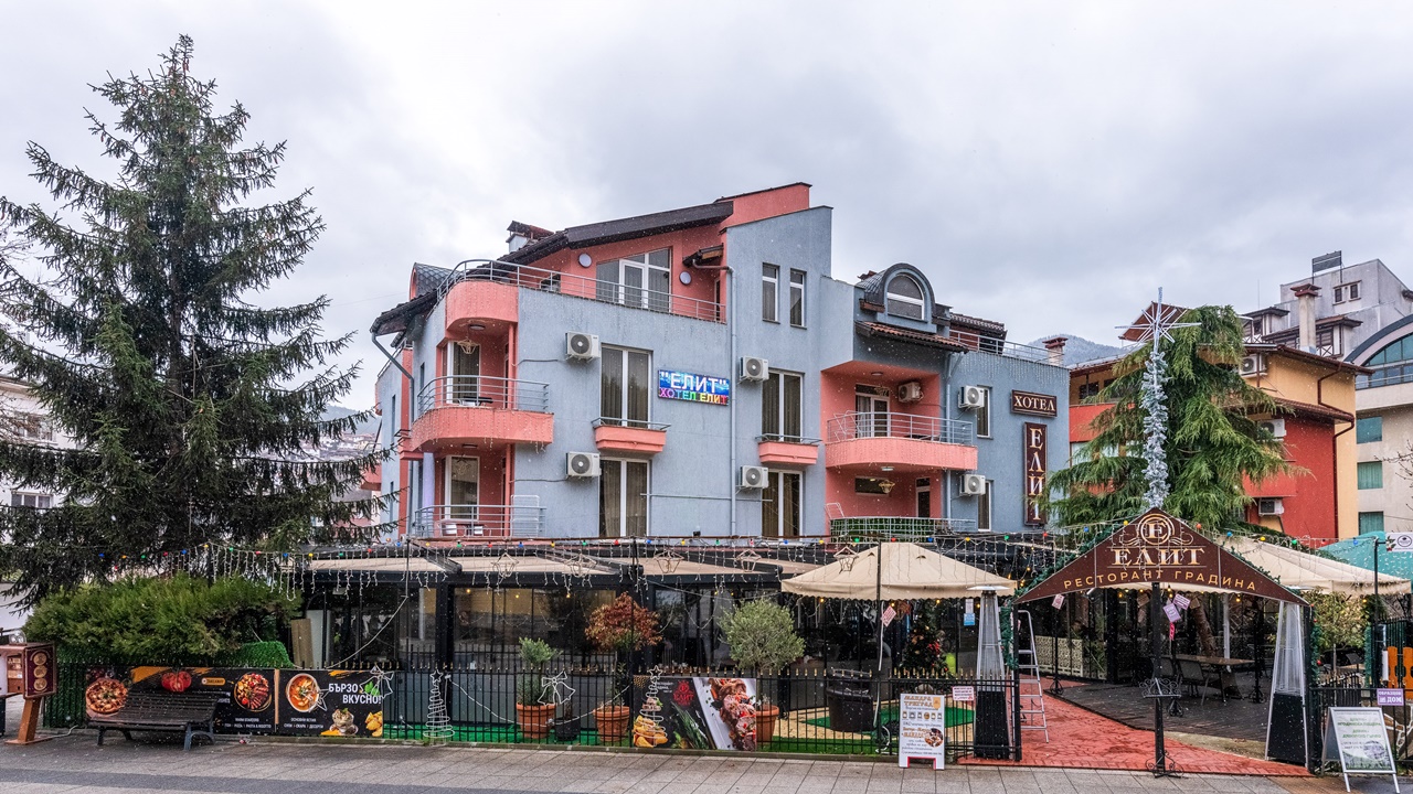 Хотел Елит, Девин, е разположен в центъра на град Девин и посреща своите гости целогодишно. Хотелът разполага с 7-двойни, 7- тройни стаи и 3 студиа, всички са стилно обзаведени и са с общ капацитет 40 места. Стаите разполагат със самостоятелна баня, климатик, телевизор със сателитни програми, телефон, интернет и мини бар. За бизнес гостите се предлага конферентна зала с 30 места.