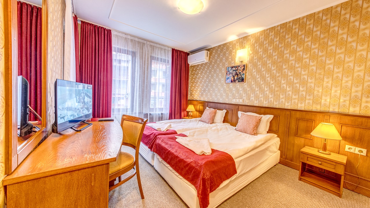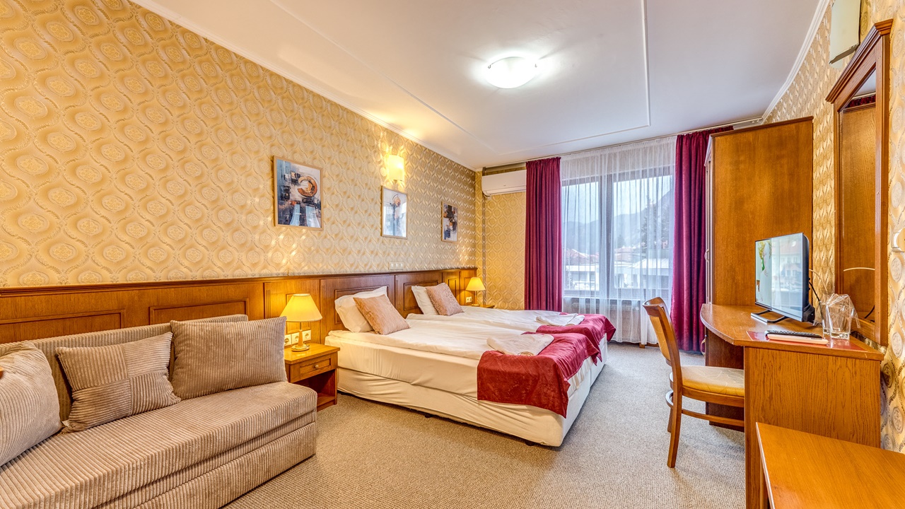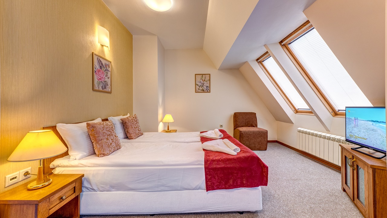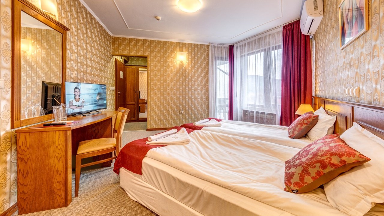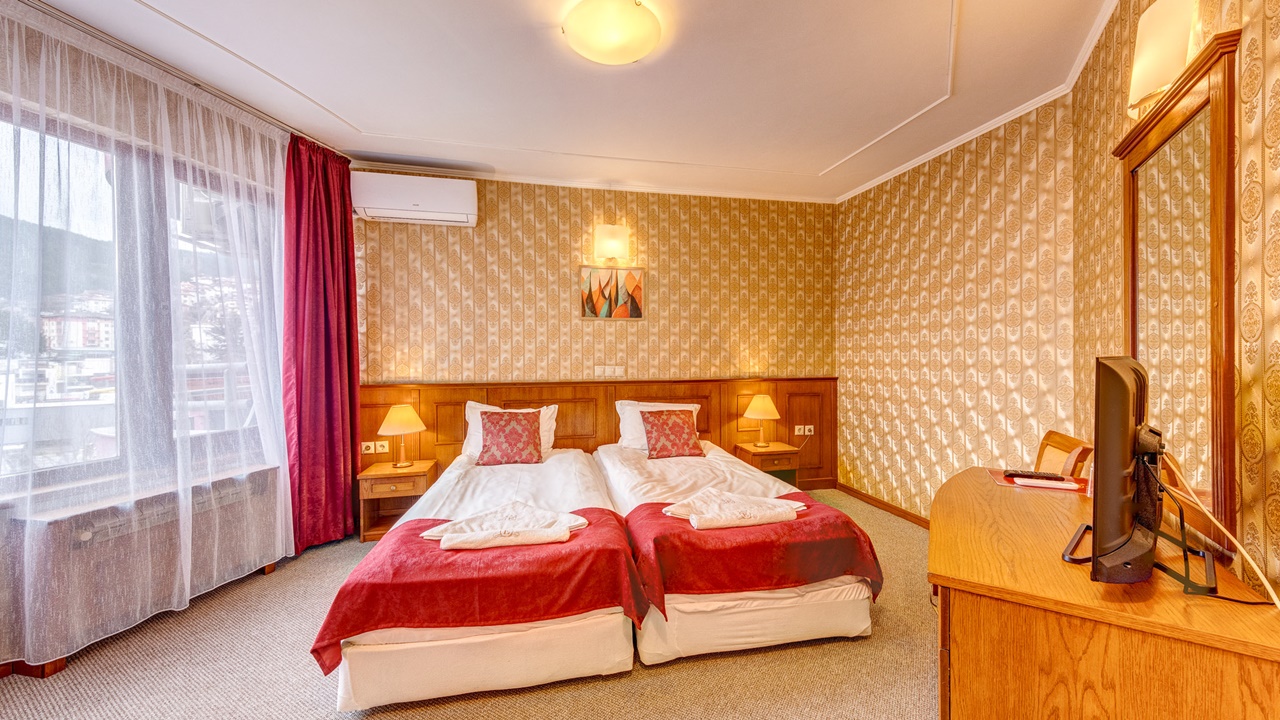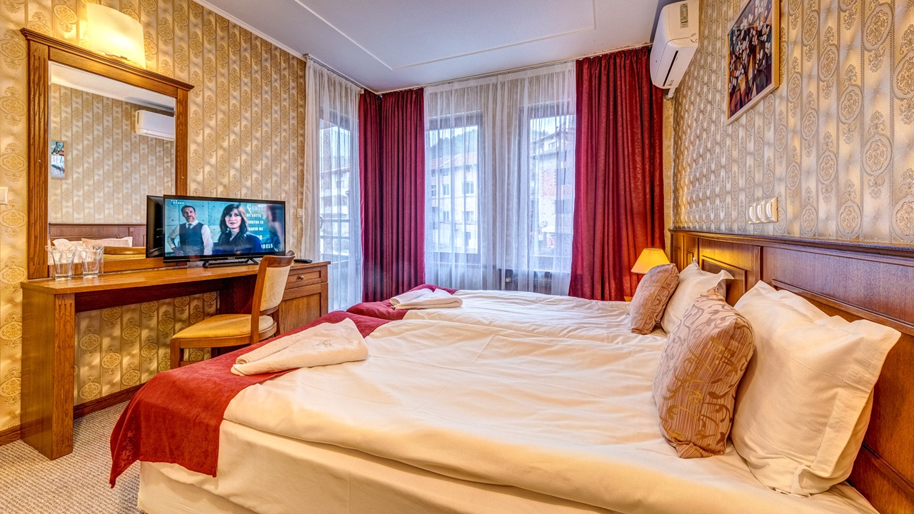 - двойна стая - 2 възрастни и 1 дете или 3 възрастни - стаите разполагат със кабелна телевизия, телевизор с плосък екран, интернет, мини бар, телефон, климатик, баня с душ, сешоар, централно отопление