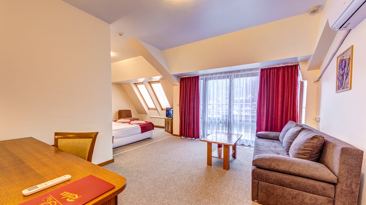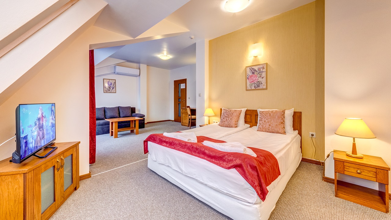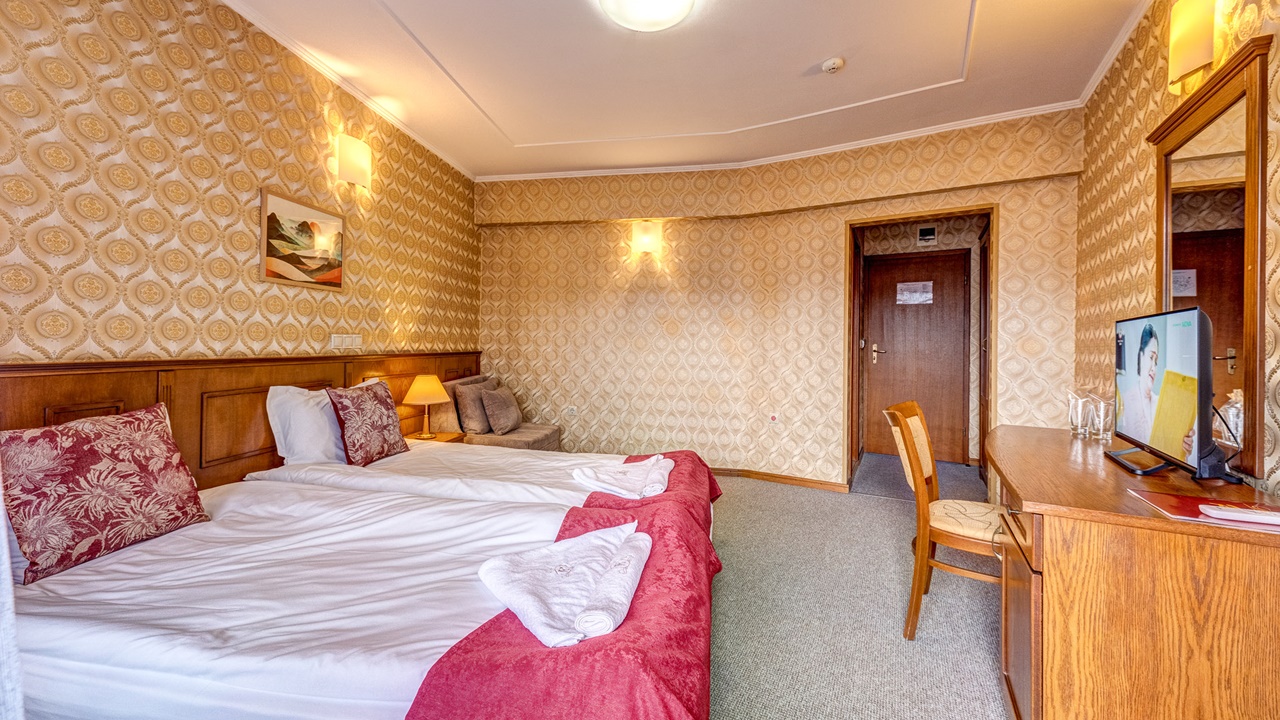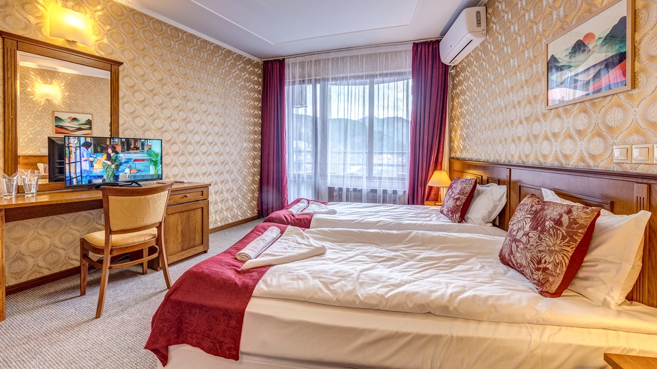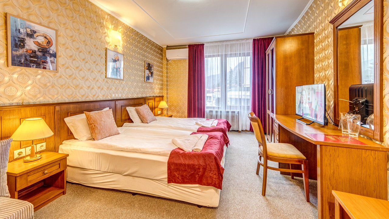 - двойна стая - 2 възрастни и 1 дете или 3 възрастни - стаите разполагат със кабелна телевизия, телевизор с плосък екран, интернет, мини бар, телефон, климатик, баня с душ, сешоар, централно отопление