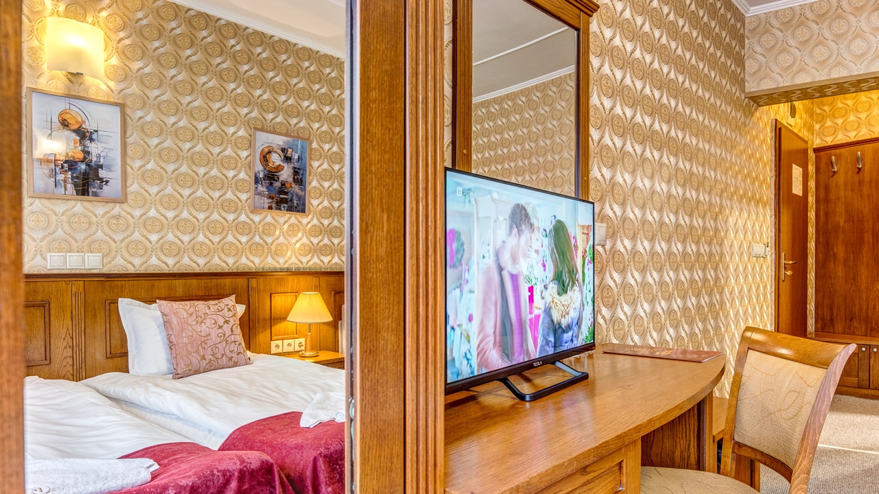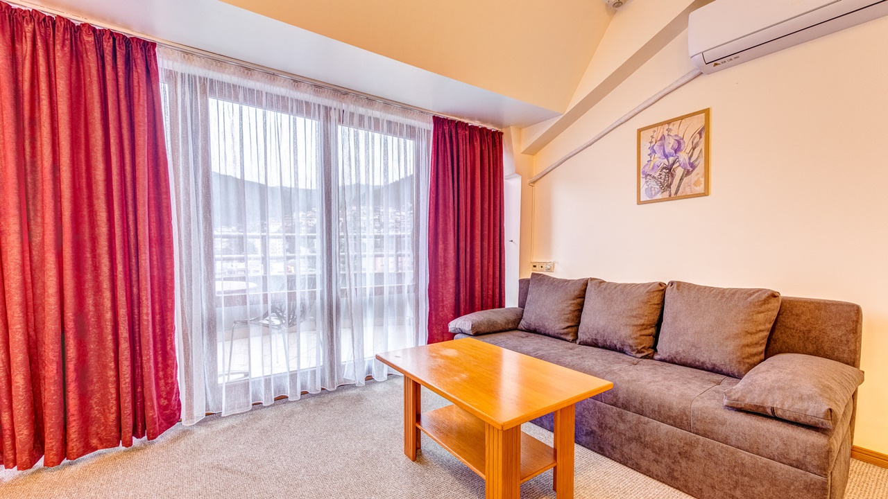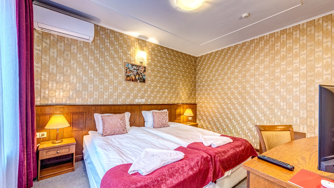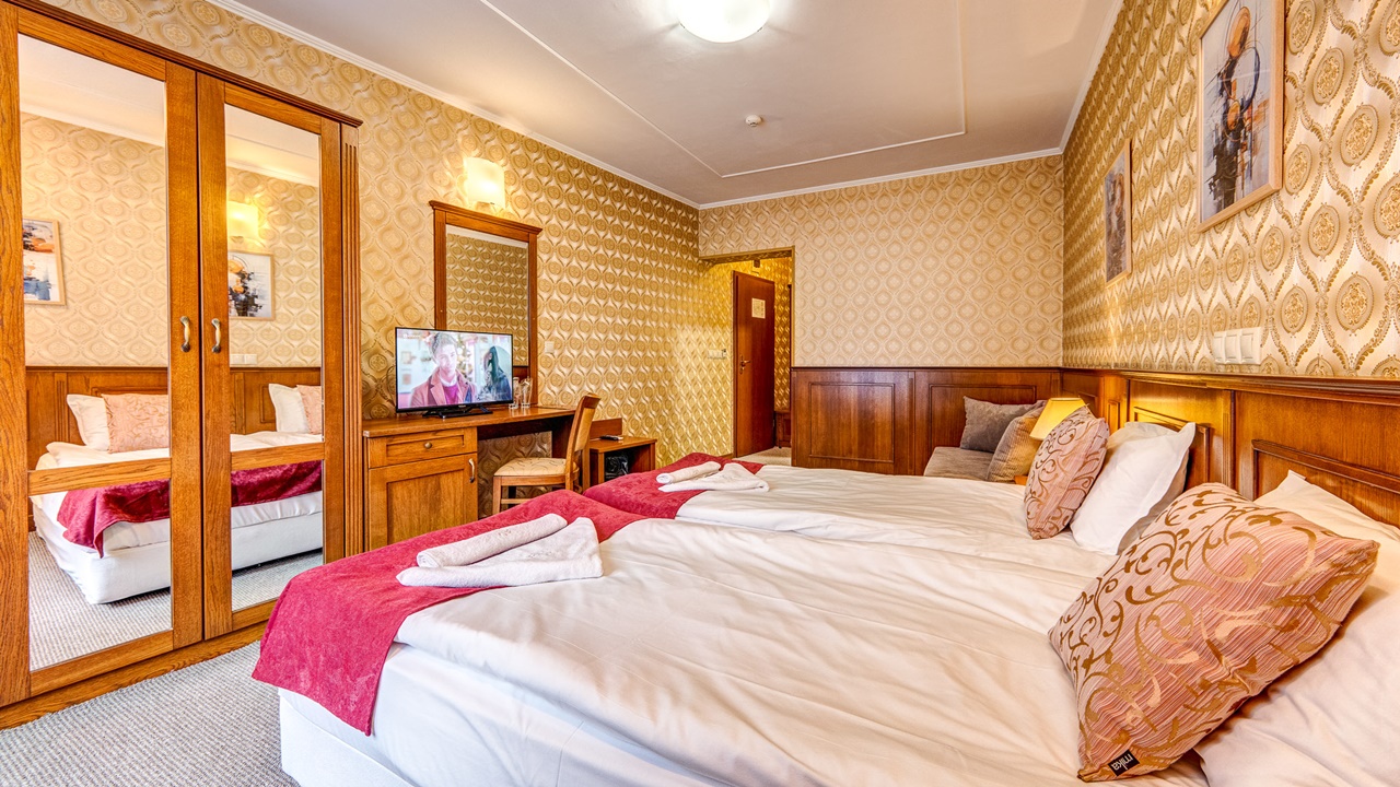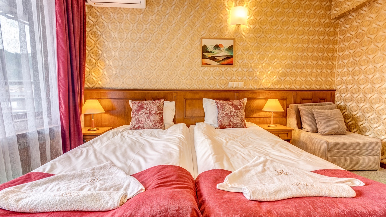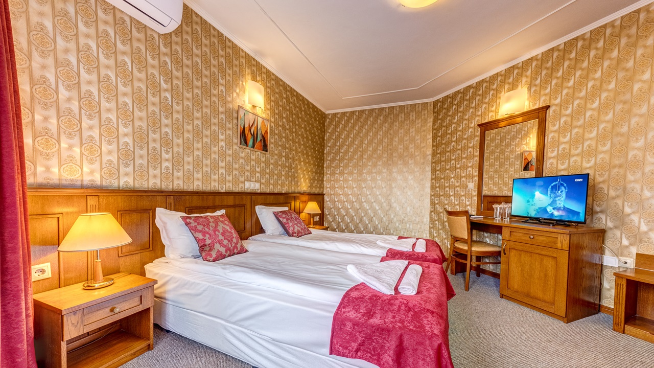 - двойна стая - 2 възрастни и 1 дете или 3 възрастни - стаите разполагат със кабелна телевизия, телевизор с плосък екран, интернет, мини бар, телефон, климатик, баня с душ, сешоар, централно отопление