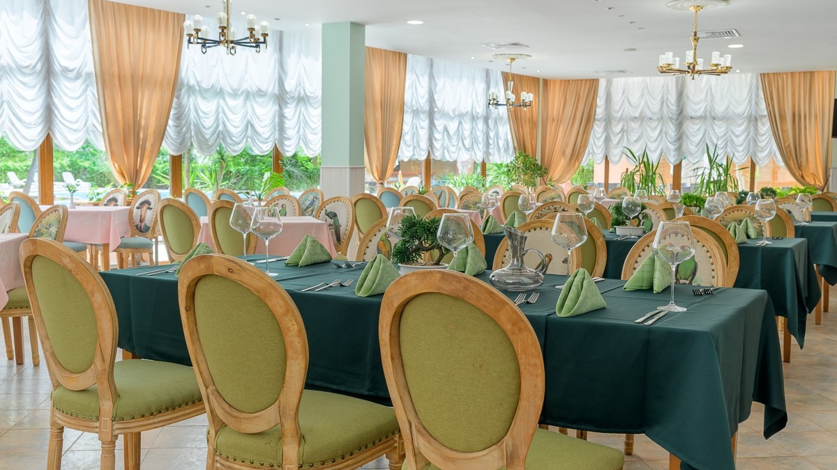 - Вечеря (18:00 - 21:00ч) на блок маса в основен ресторант. Богато меню и международни ястия с включени напитки - водка, уиски, джин, ракия, бренди, бира и вино, безалкохолни напитки, минерална вода и топли напитки