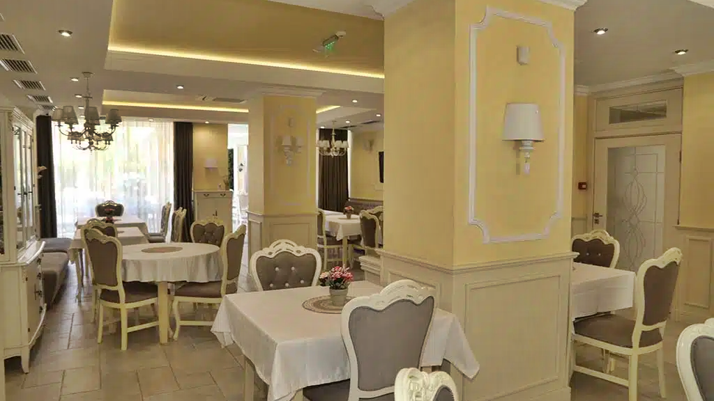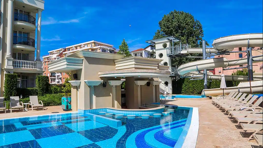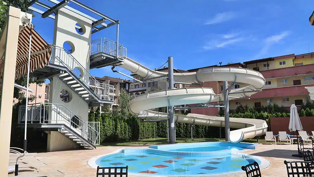 На разположение на гостите са елегантно фоайе с рецепция, лоби бар, ресторант, бар на басейна с мокър плот, външен басейн с пързалка (75 м.) и вградено джакузи, детски сектор към басейна, отопляем закрит басейн, шезлонги и чадъри около външния басейн, малък фитнес, Wi-Fi интернет, паркинг (ограничени места).
