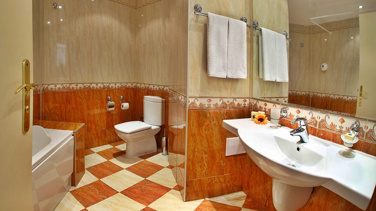 - Стандартно за всички помещения: • Централна климатизация • Кабелна телевизия със сателитни програми• Телефон • Мини-бар • Сейф • Баня с вана и вграден душ • Сешоар • Мокет • Балкон или тераса • Ежедневно почистване