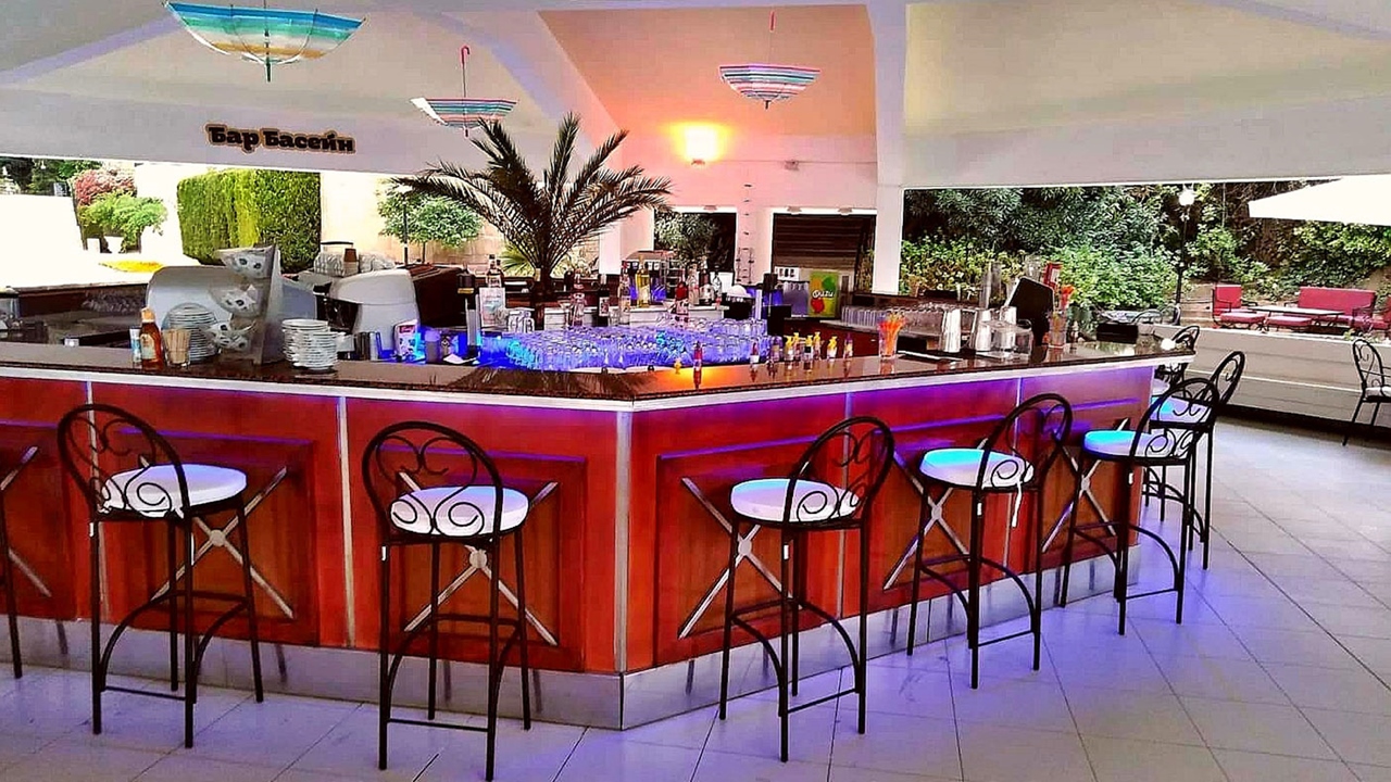- 4 лоби-бара - Лоби бар “Белвил” е мястото, където по всяко време може да се отпуснете с чаша ароматна напитка и да се насладите на разнообразието от алкохолни и безалкохолни коктейли, аперитиви, дижестиви, фрешове, уникална колекция от качествени малцови уискита. Атмосферата и обзавеждането придават усещане за спокойствие и домашен уют. Комфортният и същевременно луксозен интериор на лоби бара, го прави идеално място за краткотрайна почивка или приятелски разговори. Залата разполага със 120 места на закрито и с 60 места отвън с изглед към зелена лятна градина. Свежестта и мекотата на узрял бадем, неутралните тонове на класическо бежово, цвят шампанско и старо злато, в допълнение с перфектното обслужване, ще Ви създадат уникални изискани усещания.