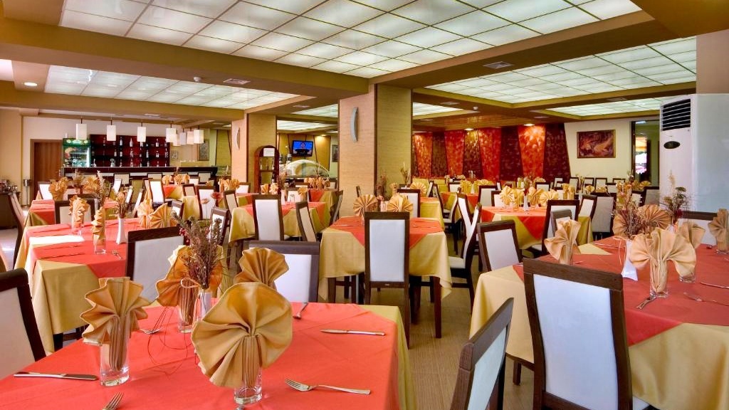 - Вечеря: 18:00 – 20:30 ч. на блок маса в основен ресторант: селекция от пресни салати и супи, богато разнообразие от български и международни ястия, вегетариански и месни ястия, паста, селекция от хлебни изделия, сладък бюфет с разнообразни десерти