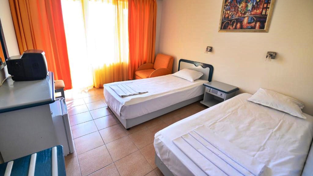- Всички помещения са дезинфекцирани и оборудвани с индивидуален климатик, мини хладилник, кабелна телевизия, телефон, баня, тоалетна и балкон