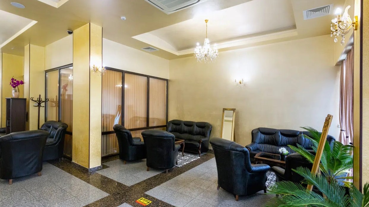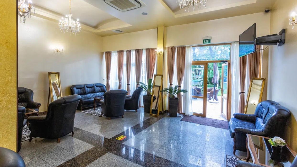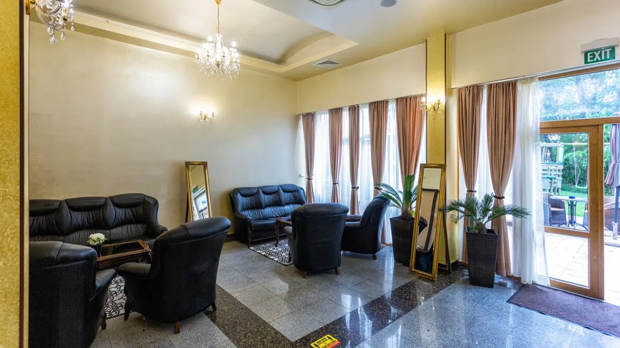- Всички помещения са просторни, звукоизолирани, обзаведени с луксозна мебелировка от естествени материали. Оборудвани са със самостоятелен климатик, телевизор, телефон, мини бар, интернет, баня с вана, сешоар и телефон