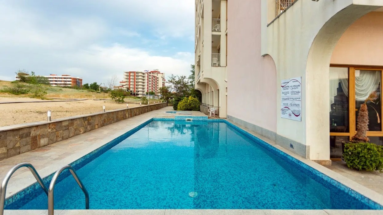 - Апартаменти (Едноспални): 46 кв.м. Всекидневна със спалня с климатици във всяка стая, 2 тераси и гледка море