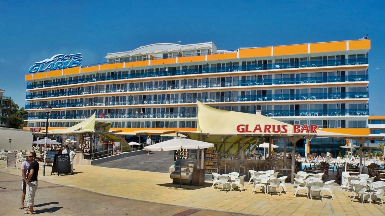 Хотел Гларус**** се намира в непосредствена близост до плажната ивица на най-големия и красив южен черноморски комплекс Слънчев бряг, на по-малко от 5 минути от автобусната спирка и центъра на курорта (пеша). Седеметажната сграда на hotel Glarus се обслужва от четири асансьора и предлага настаняване в 226 помещения, от които 152 двойни стаи. В допълнителното крило са разположени двойни промо стаи и двойни стаи с частичен изглед към морето/басейна.