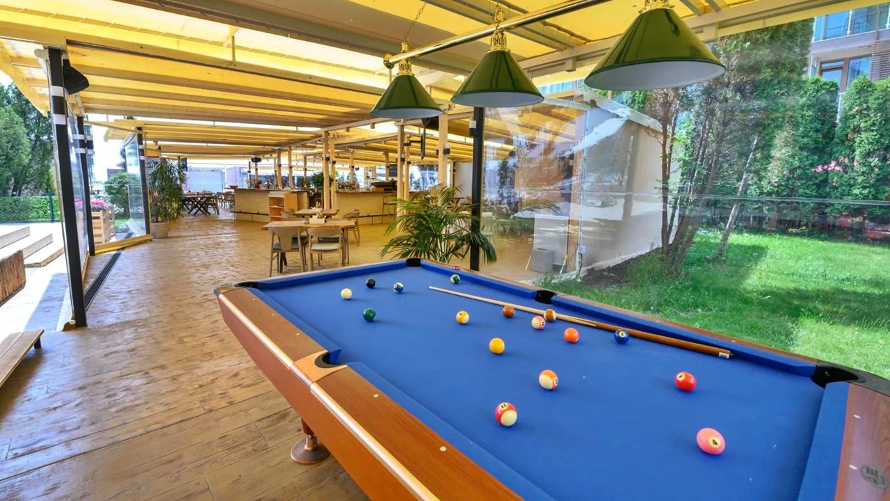 - Чадър и шезлонг край басейните (при наличие на свободни)