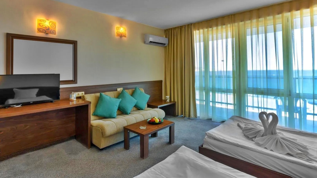 - При възможност в деня на пристигане ХОТЕЛИЕРЪТ предоставя стаи с изглед към морето или басейна на хотела срещу допълнително заплащане - 10 €/19.56 лв. на ден