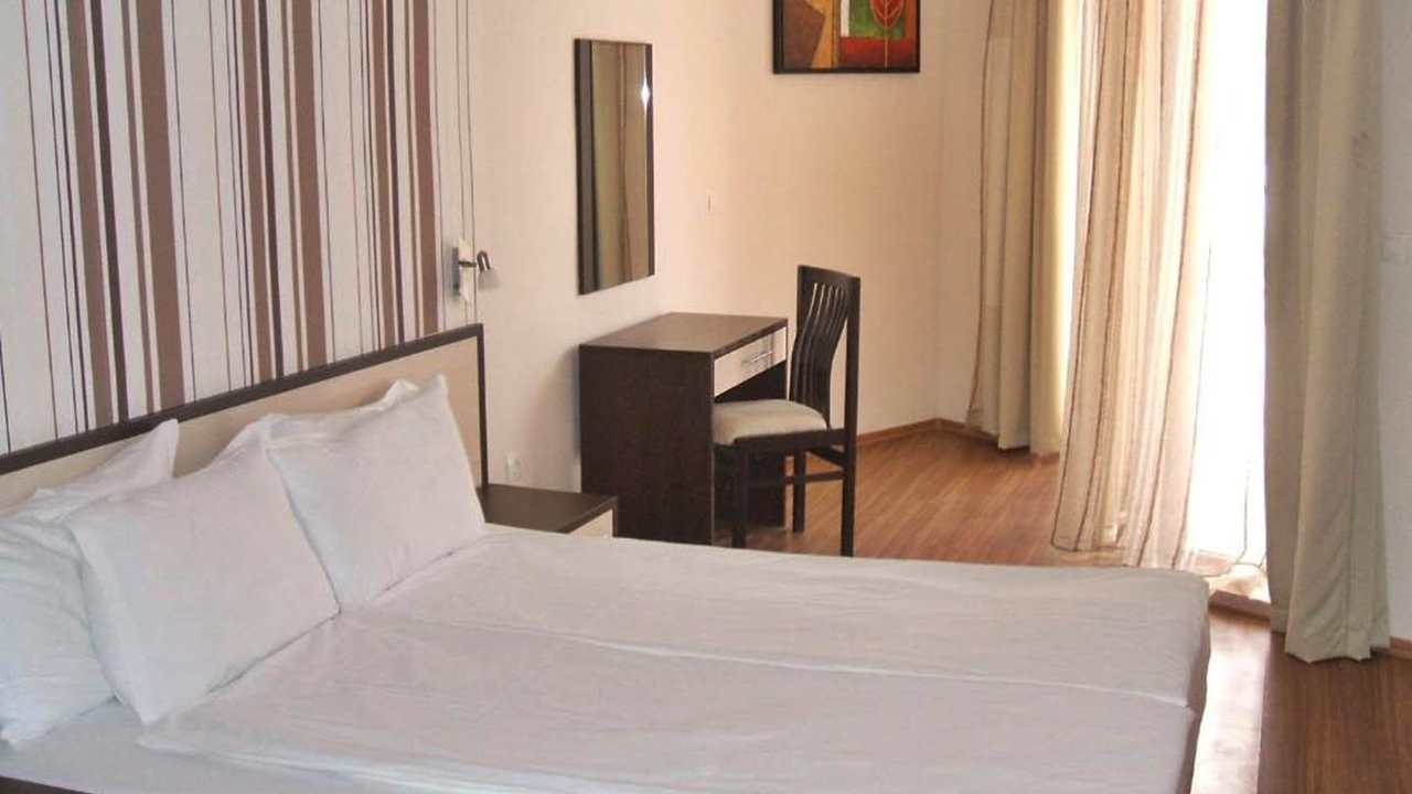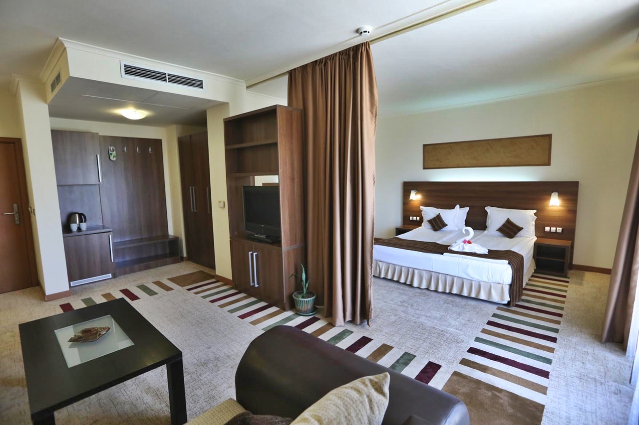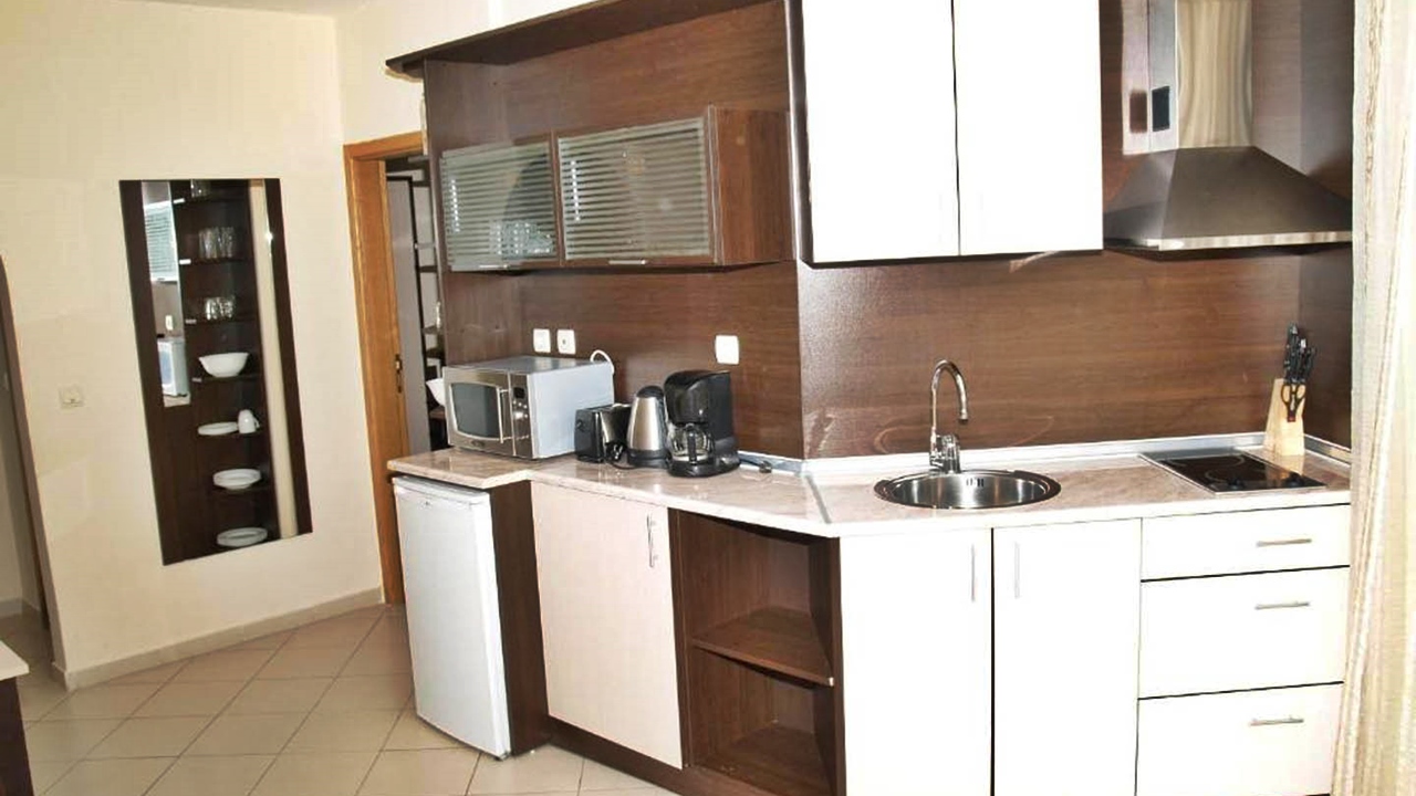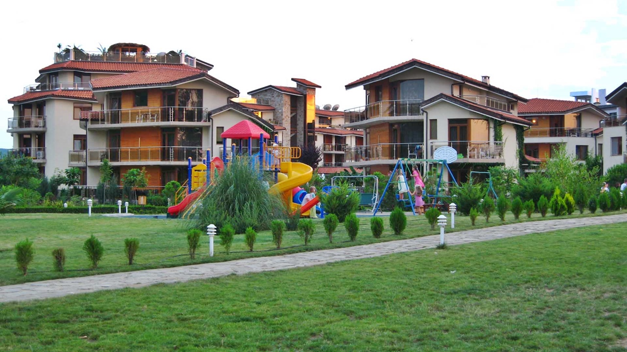- апартамент с 1 спалня - приблизителна площ около 50 м2 във вили и около 70 кв.м. в анекс сграда Състоят се от едно спално помещение (двойно легло) и всекидневна с разтегателен двоен диван, напълно оборудван кухненски бокс с маса за хранене, сателитна телевизия, индивидуален климатик, тераса с изглед басейн/парков изглед, телефон, санитарен възел с вана и/или душ кабина, сешоар