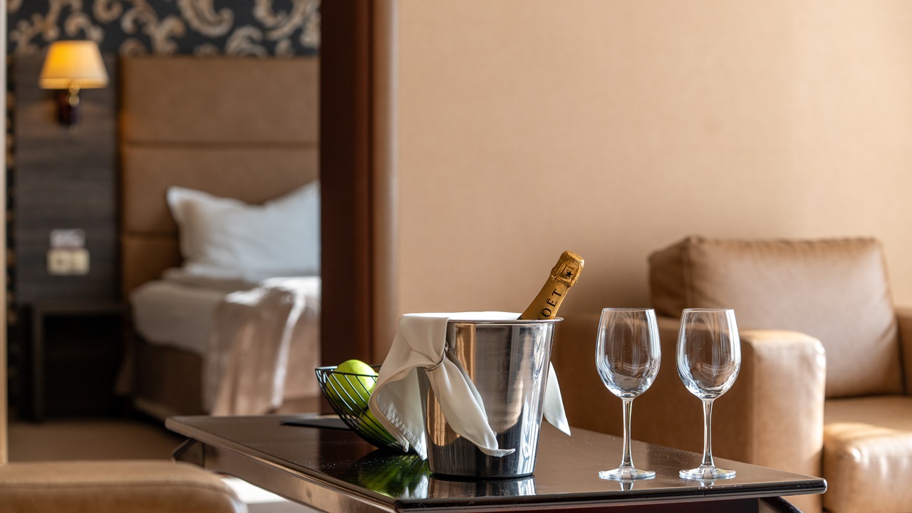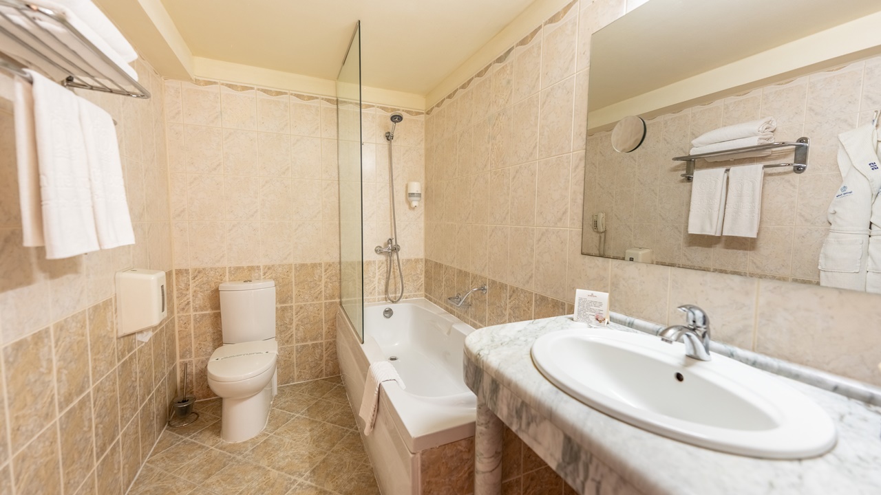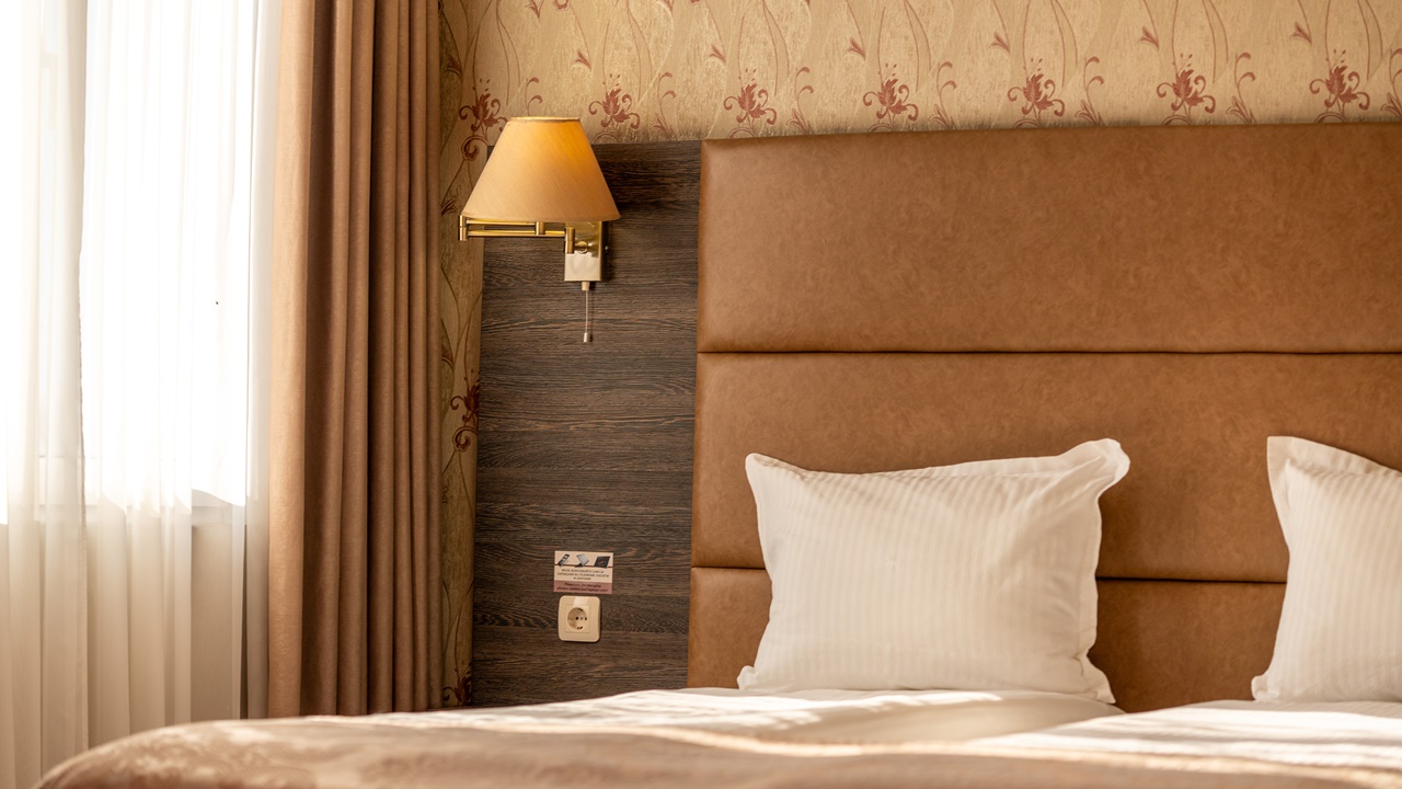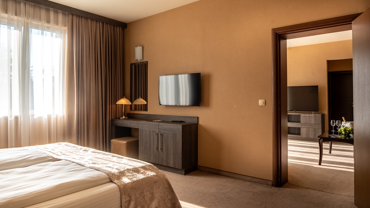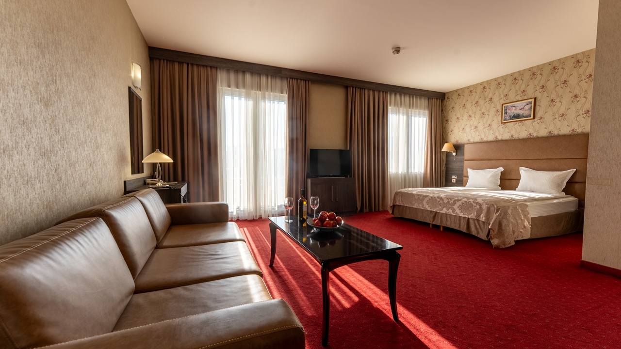 - Двойна стандартна стая - Елегантна и уютна, с изглед към басейна. Удобства: спалня, плоскоекранен ТВ със сателитни канали, Wi-Fi, сейф, минибар, работно бюро, баня с вана или душ, сешоар, електронна заключваща система