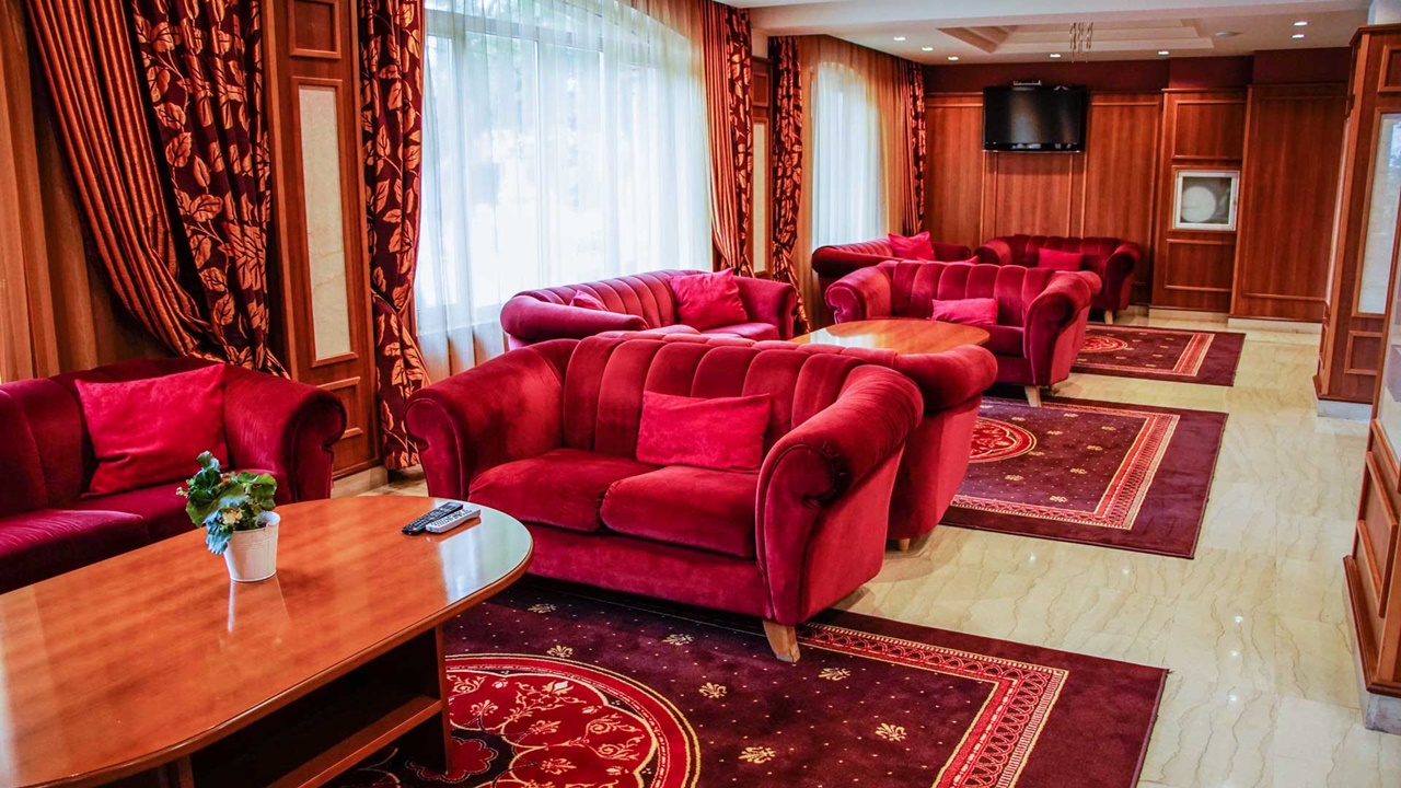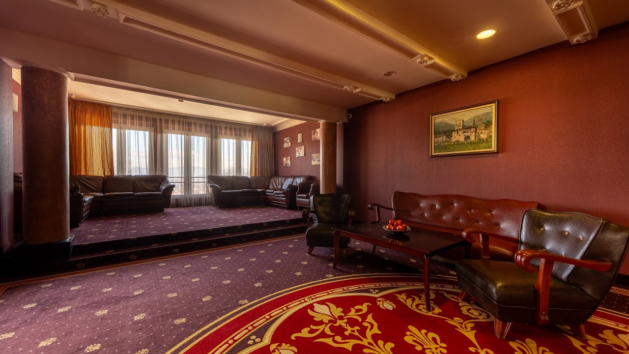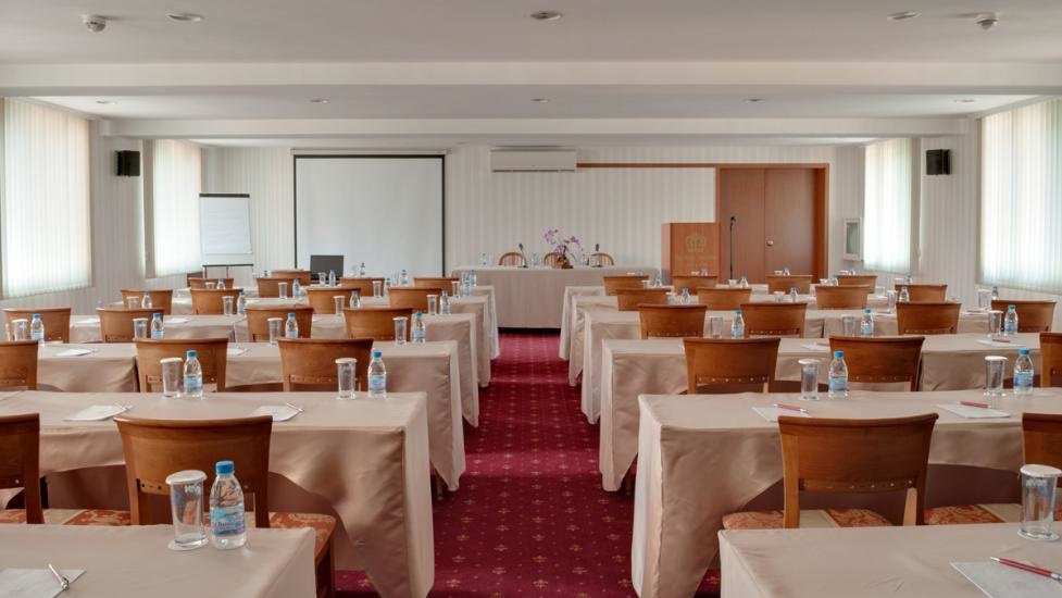 Хотелът разполага с 3 конферентни зали (120 / 30 / 15 места),мултимедия, микрофони, бизнес услуги и просторна тераса за кафе-паузи с панорама. Гостите се наслаждават на лоби бар, Ресторант Двореца, летния бар „Пещерата“ и италианския ресторант „Ария Фреска“.
