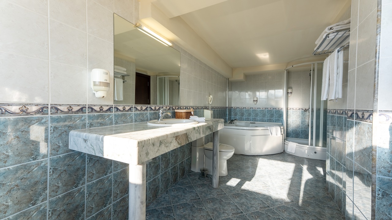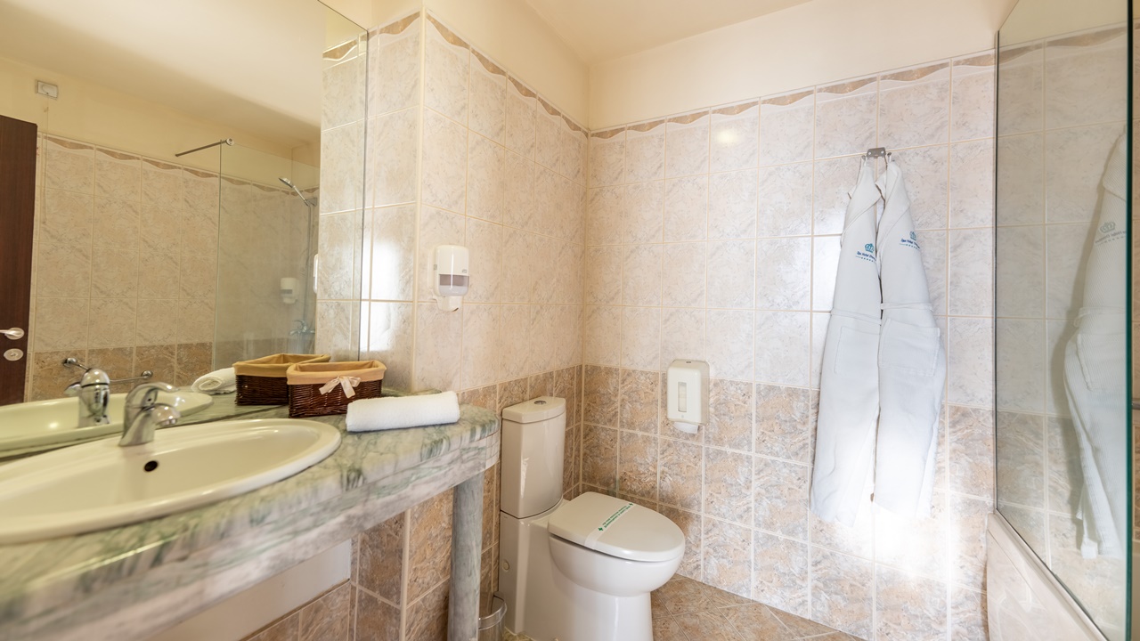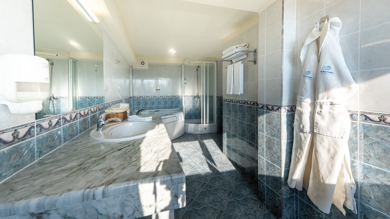 - Двойна мансардна стая - Елегантна и уютна, с изглед към басейна. Удобства: спалня, климатик, плоскоекранен ТВ със сателитни канали, Wi-Fi, сейф, минибар, работно бюро, баня с вана или душ, сешоар, електронна заключваща система