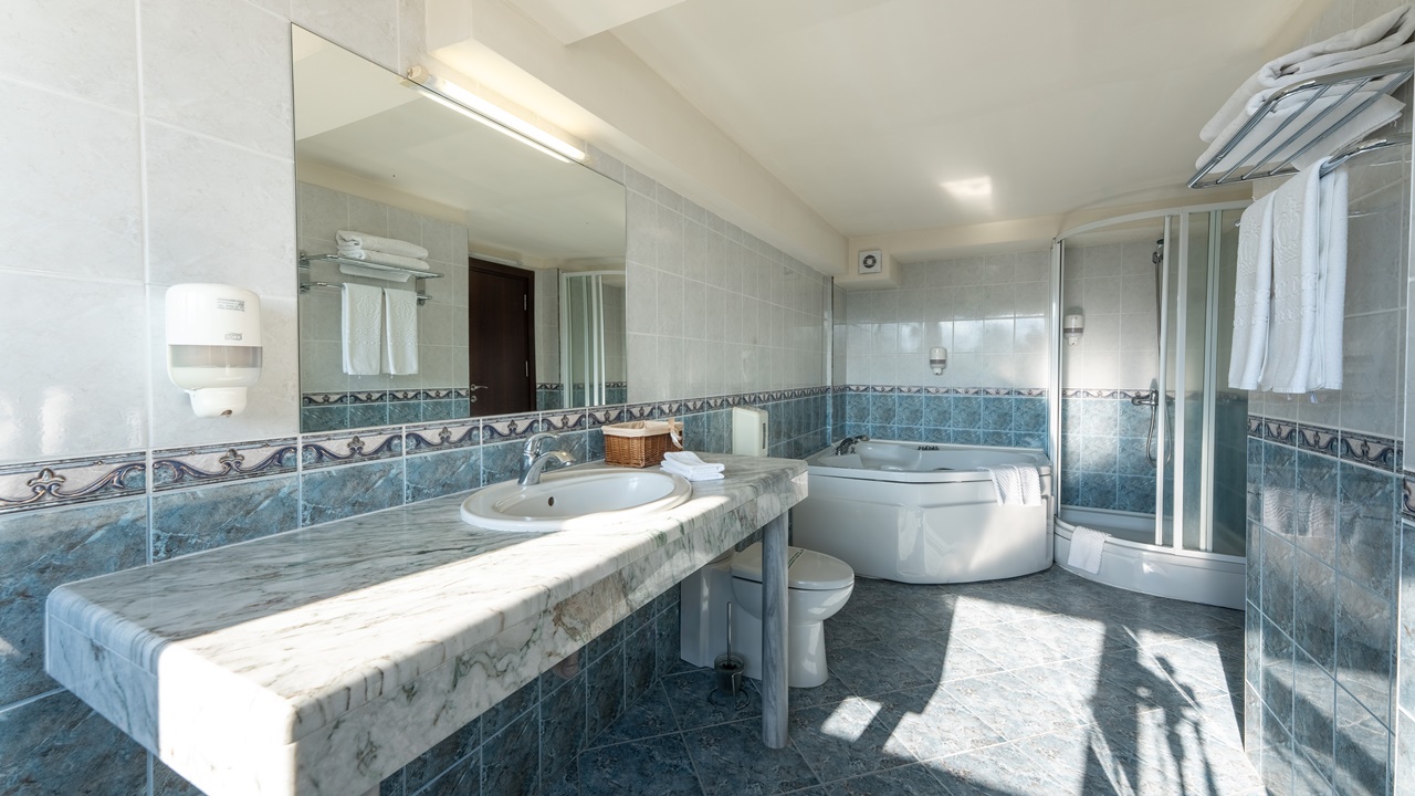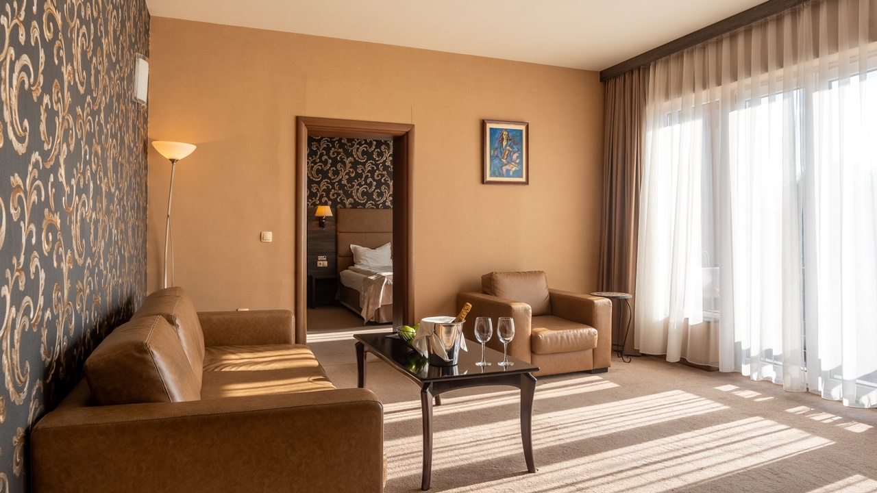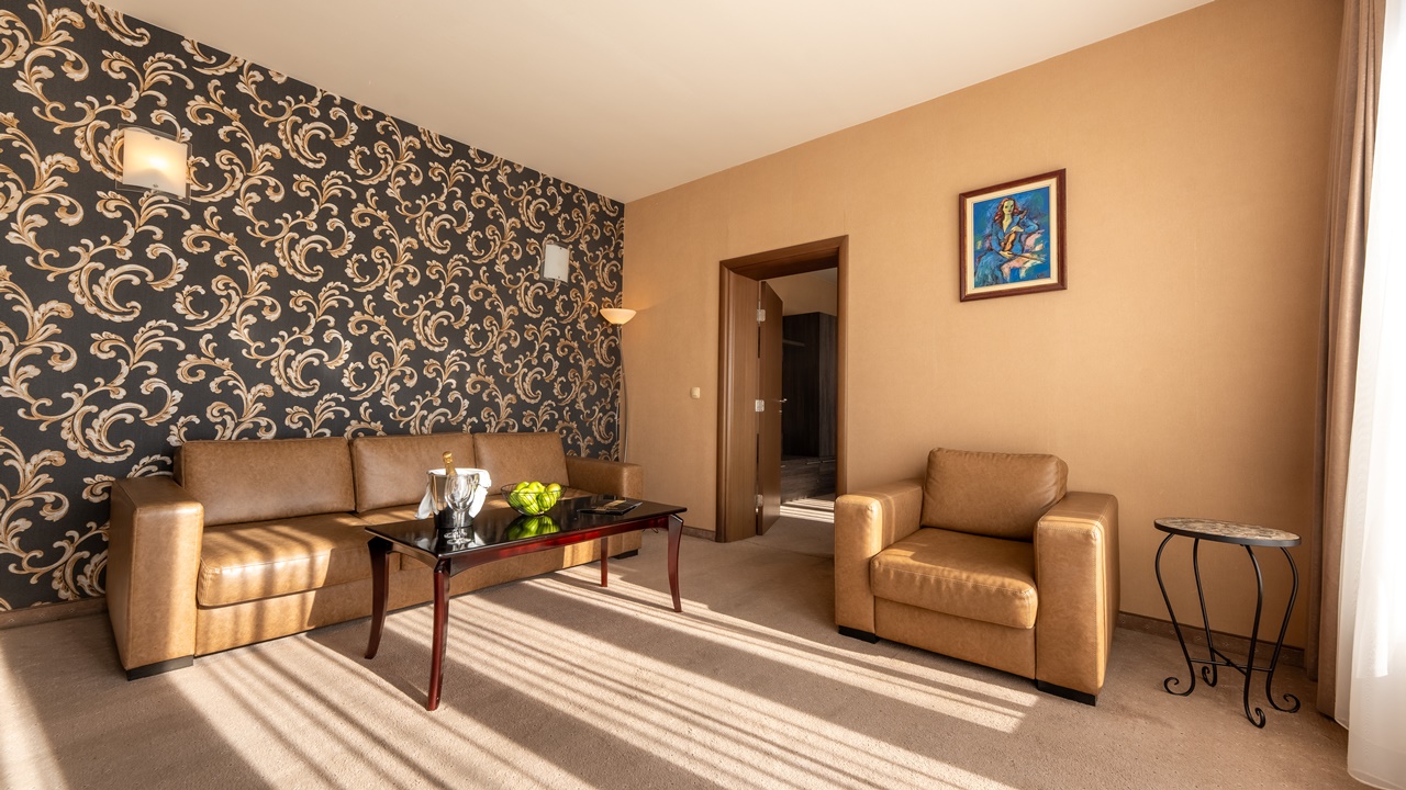 - Апартамент делукс - Апартаментът се състои от 2 стаи с общ размер 90 кв. м., голямо двойно и 2 единични легла, баня с вана и сешоар, телевизор с плосък екран, сейф и климатик;