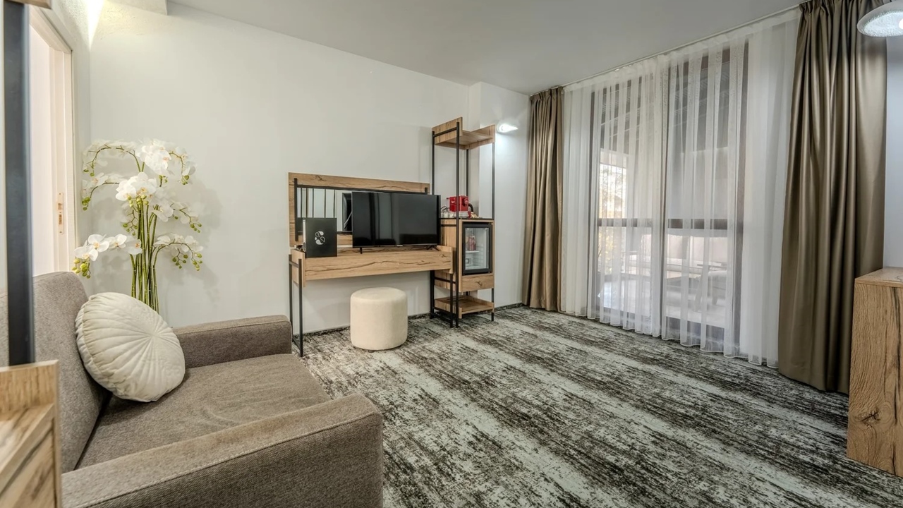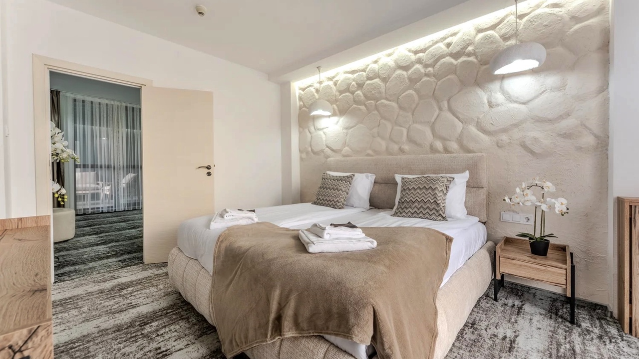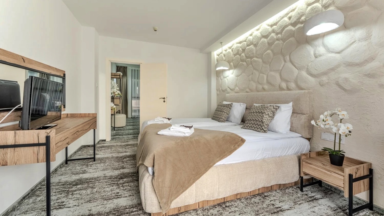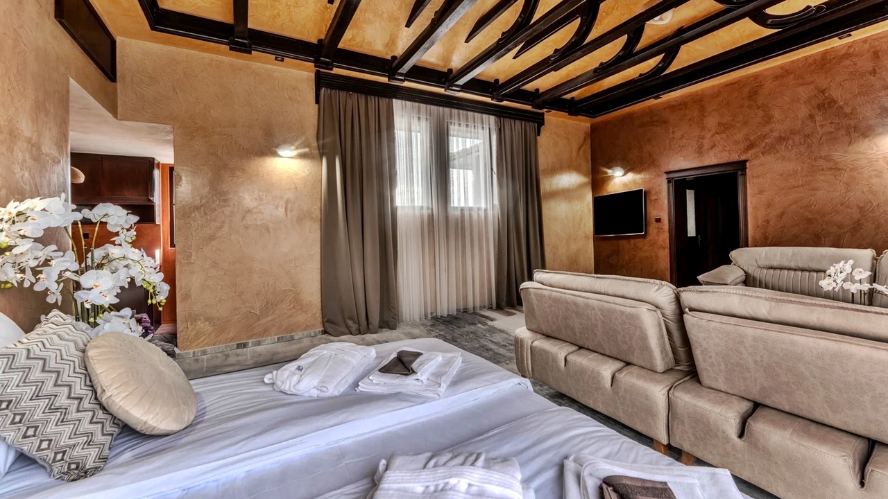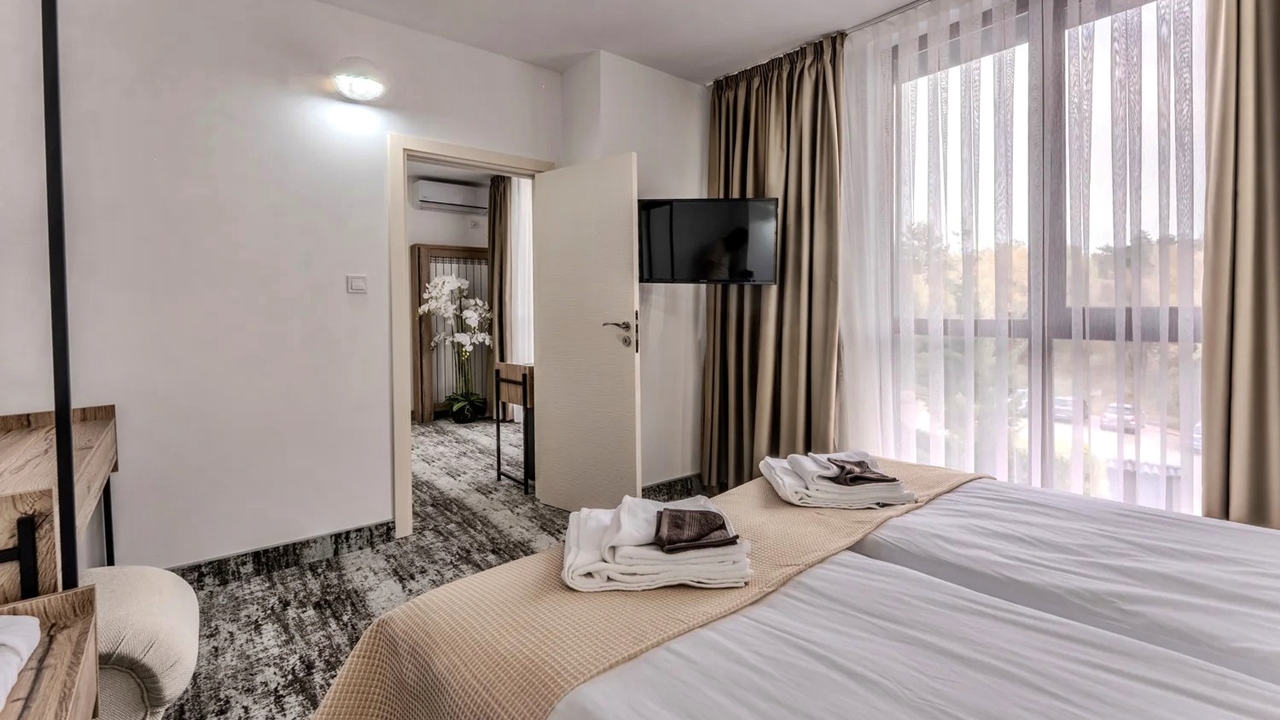 - апартамент лукс - разполага с две спални; спалня и две единични легла; спалня с разтегателен диван
