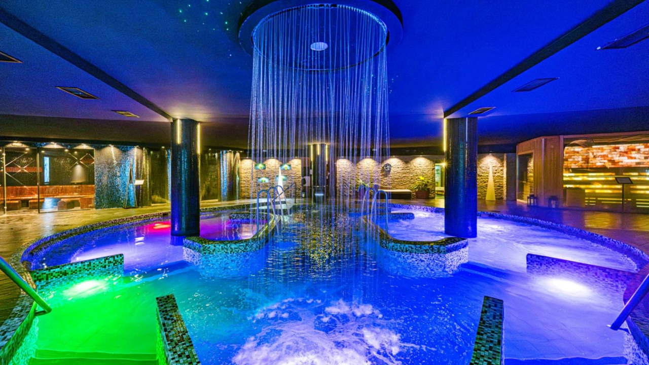 - Вътрешен топъл акватоничен басейн с хидромасажни дюзи