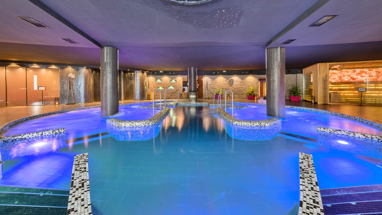 - Вътрешен топъл акватоничен басейн с хидромасажни дюзи