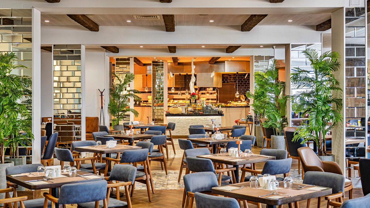 - 08:00-10:00 am - Закуска AlldayRestaurant – разнообразие от топли и студени ястия, солени и сладки закуски, английска закуска, яйчни специалитети, разнообразни млечни продукти, студени колбаси и сирена, селекция от хлебни изделия, шоу кук с разнообразни топли палачинки, зърнени храни и варива, пресни сезонни и сушени плодове, селекция от плодови конфитюри, различни видове топинги, свежи зеленчуци, ядки, диетична секция, бебешки млека и пюрета