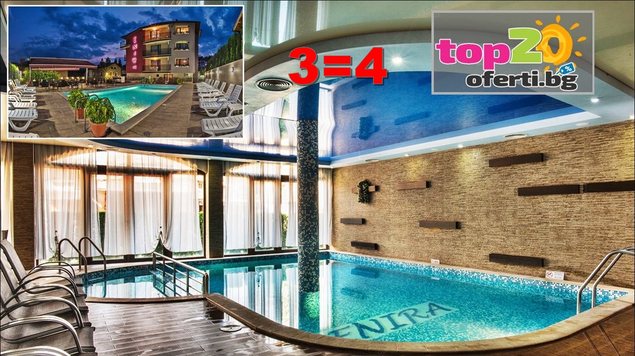 СПА Хотел Енира - Велинград ви посреща с добро вино и храна, уют и спокойствие, дискретност и комфорт, за да ви избави от сивото ежедневие, еднообразието и напрежението и да ви изпрати щастливи и усмихнати! С неповторима семейна атмосфера, предлагаща съвременен комфорт и изисканост СПА Хотел Енира е перфектното място за вашата почивка. Велинград - СПА Столицата на Балканите - съчетава удобствата на града със спокойствието на планината и е гаранция за незабравима почивка.