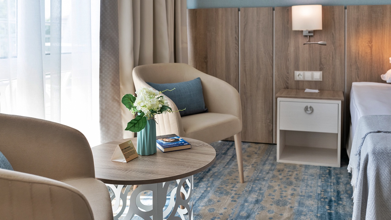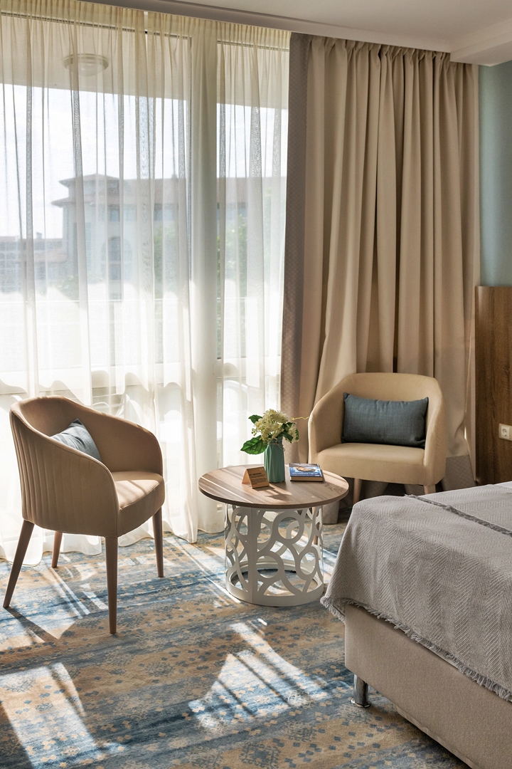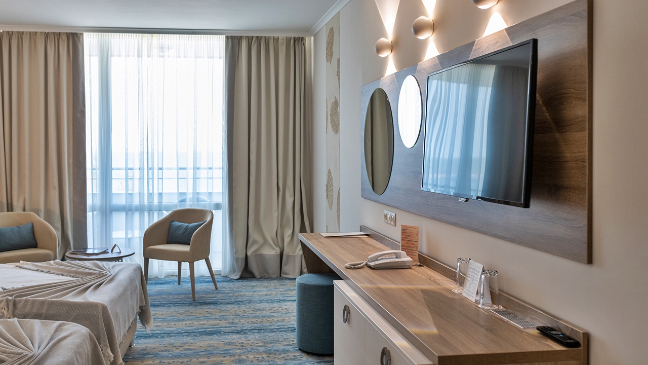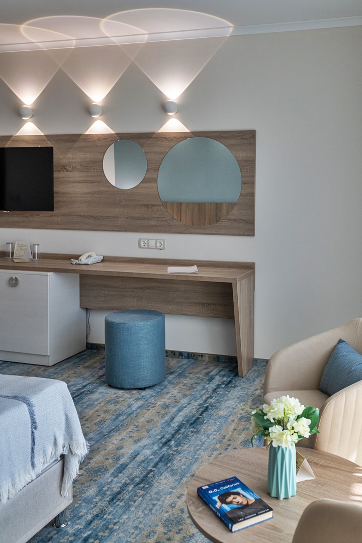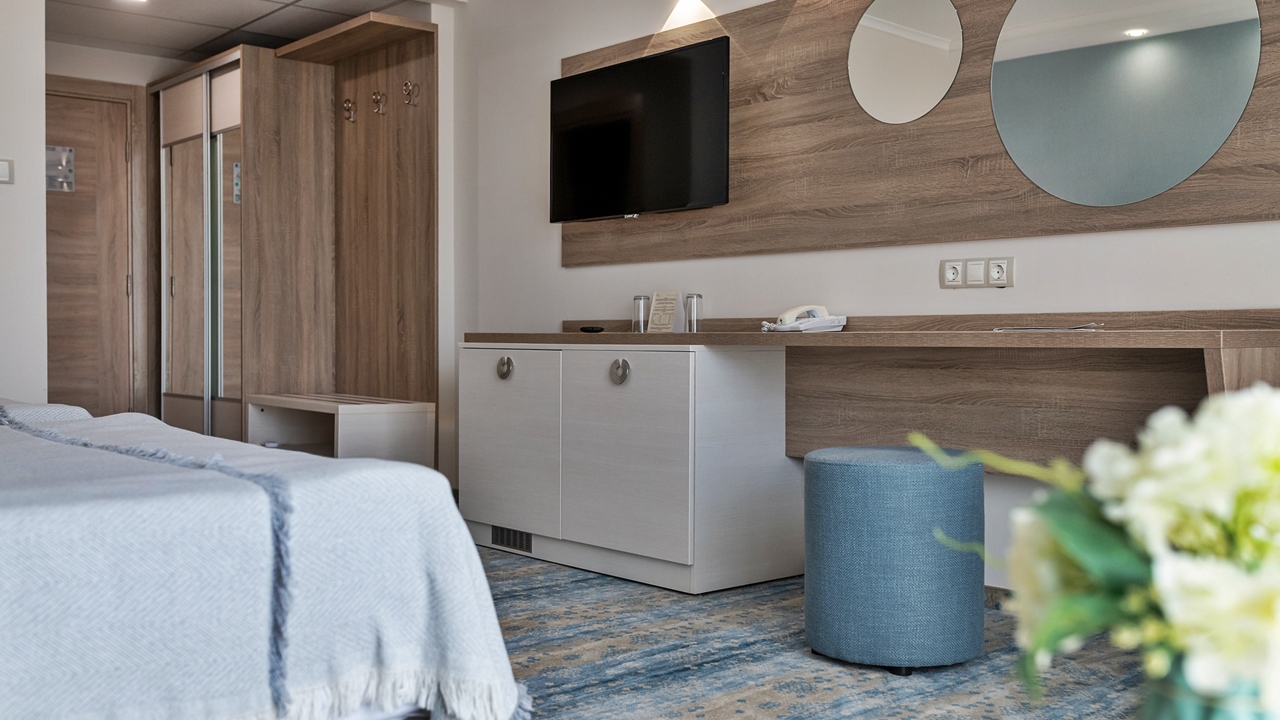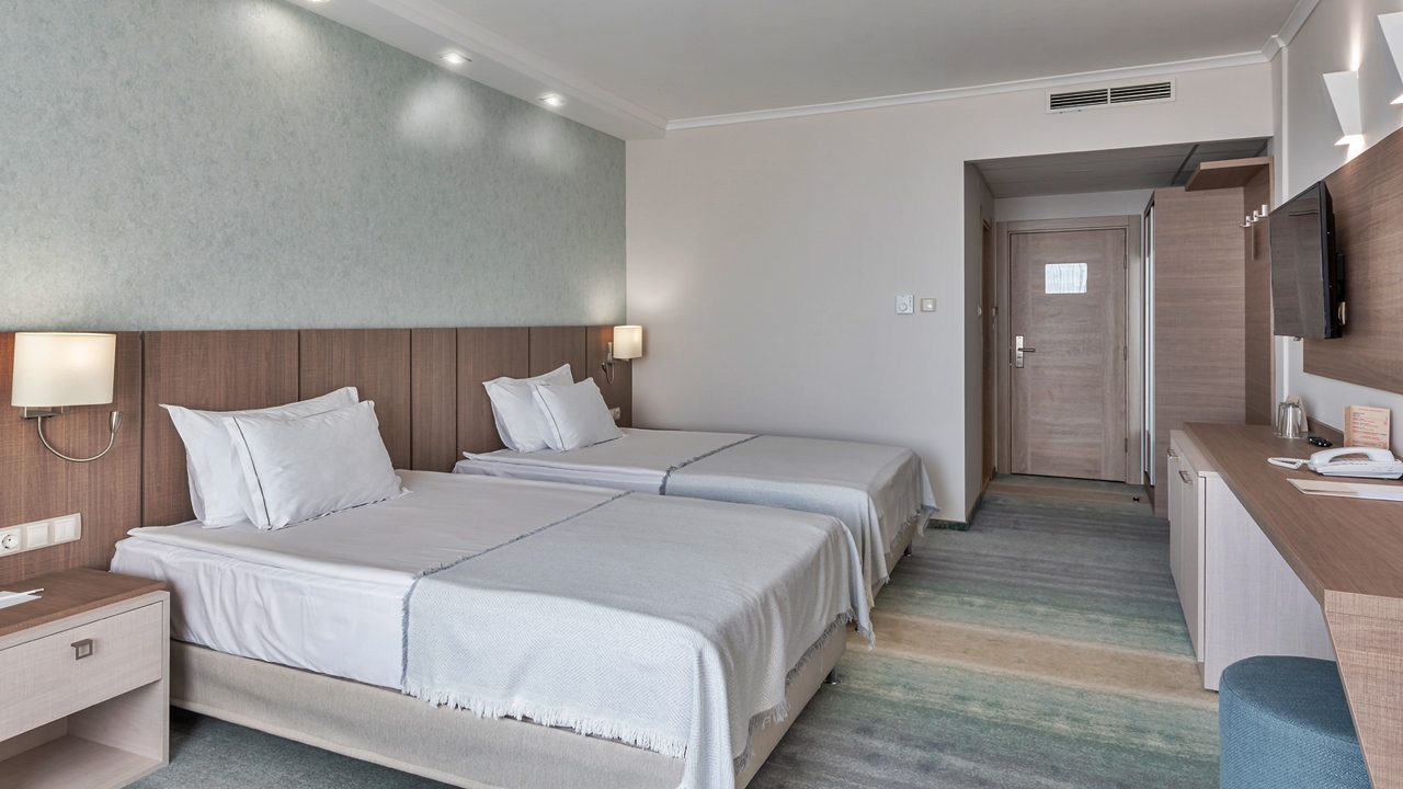 - Двойна стая Супериор Море - всички са с две отделни легла, допълнителното легло е подобно на обикновеното легло, но по-малко (90/200), бюро, баня с душ и тоалетна, сешоар, огледало, климатик, мини бар ( срещу заплащане), сателитна телевизия, сейф (безплатно), телефон и балкон с прекрасна гледка към целия морски залив