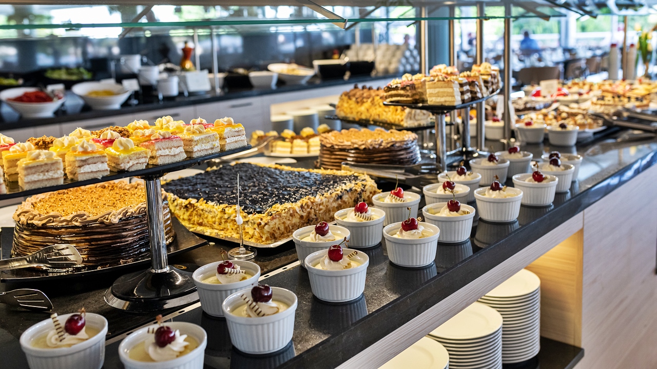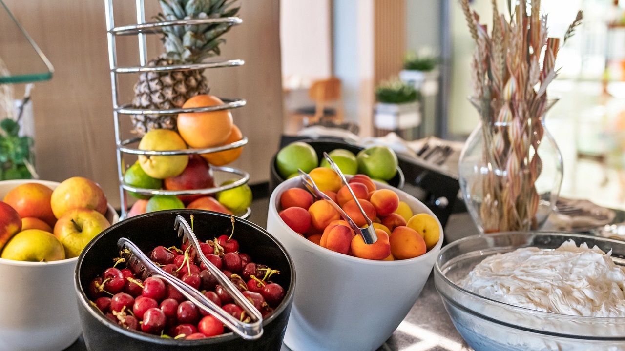 - Закуска на бюфет (07.30 - 10.00 ч.) - в основен ресторант с кафе, чай, мляко, минерална вода от диспенсър и сок, разнообразие от топли и студени ястия, яйчени специалитети, млечни продукти, зърнени храни, колбаси и сирена, сладкиши, плодове и зеленчуци