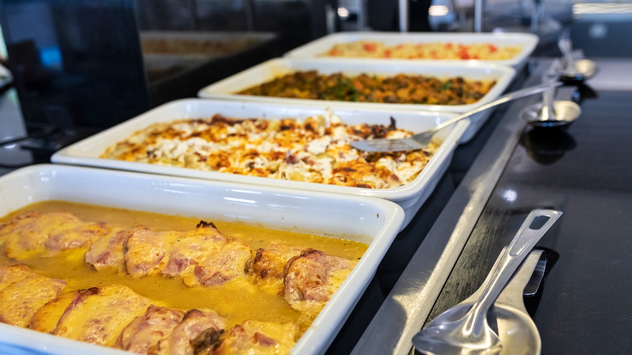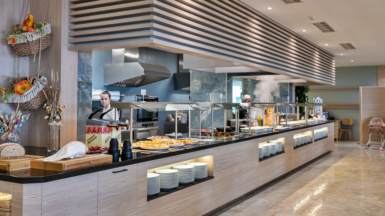 - Вечеря на бюфет (18.00 - 21.00 ч.) - в основен ресторант с местни алкохолни и безалкохолни напитки и наливна бира, селекция от пресни салати, предястия, готвени и печени основни ястия, вегетариански ястия, паста, тестени изделия, десерти.