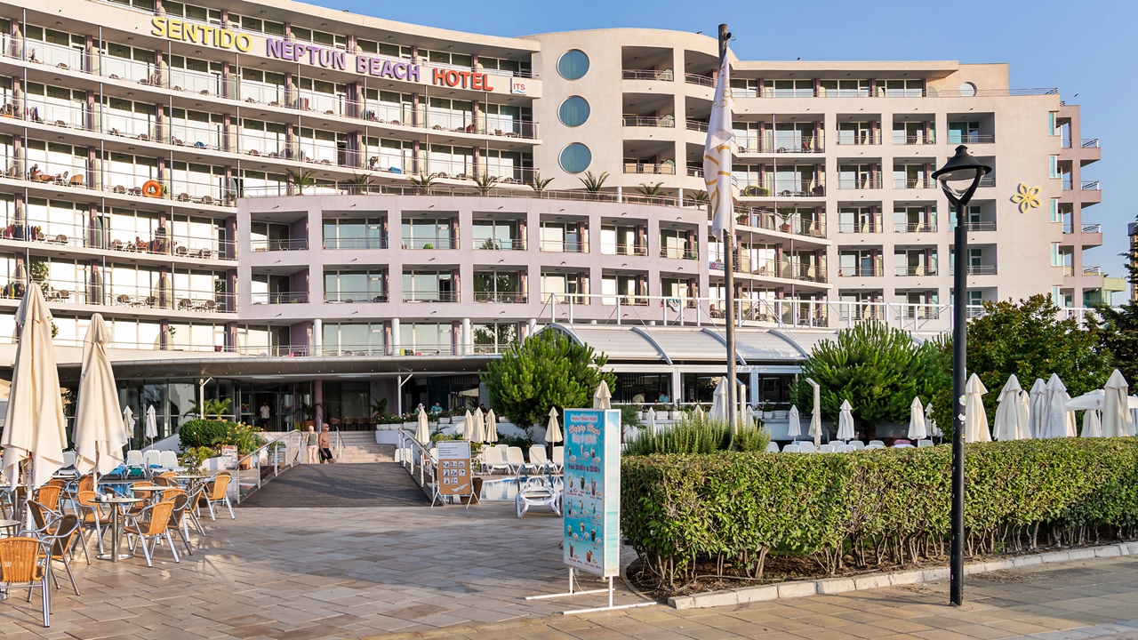 Хотел Нептун бийч**** се намира директно на крайбрежната алея, само на няколко крачки от плажа. Центърът на Слънчев бряг е съвсем наблизо. Любителите на уелнес почивки могат да се насладят на релаксиращи масажи, а ценителите на добрата кухня – на кулинарни изкушения. Седеметажният Hotel Neptun Beach**** разполага с три асансьора и предлага настаняване в 330 модерни помещения - стандартни стаи, двойни стаи супериор и джуниър суитове.